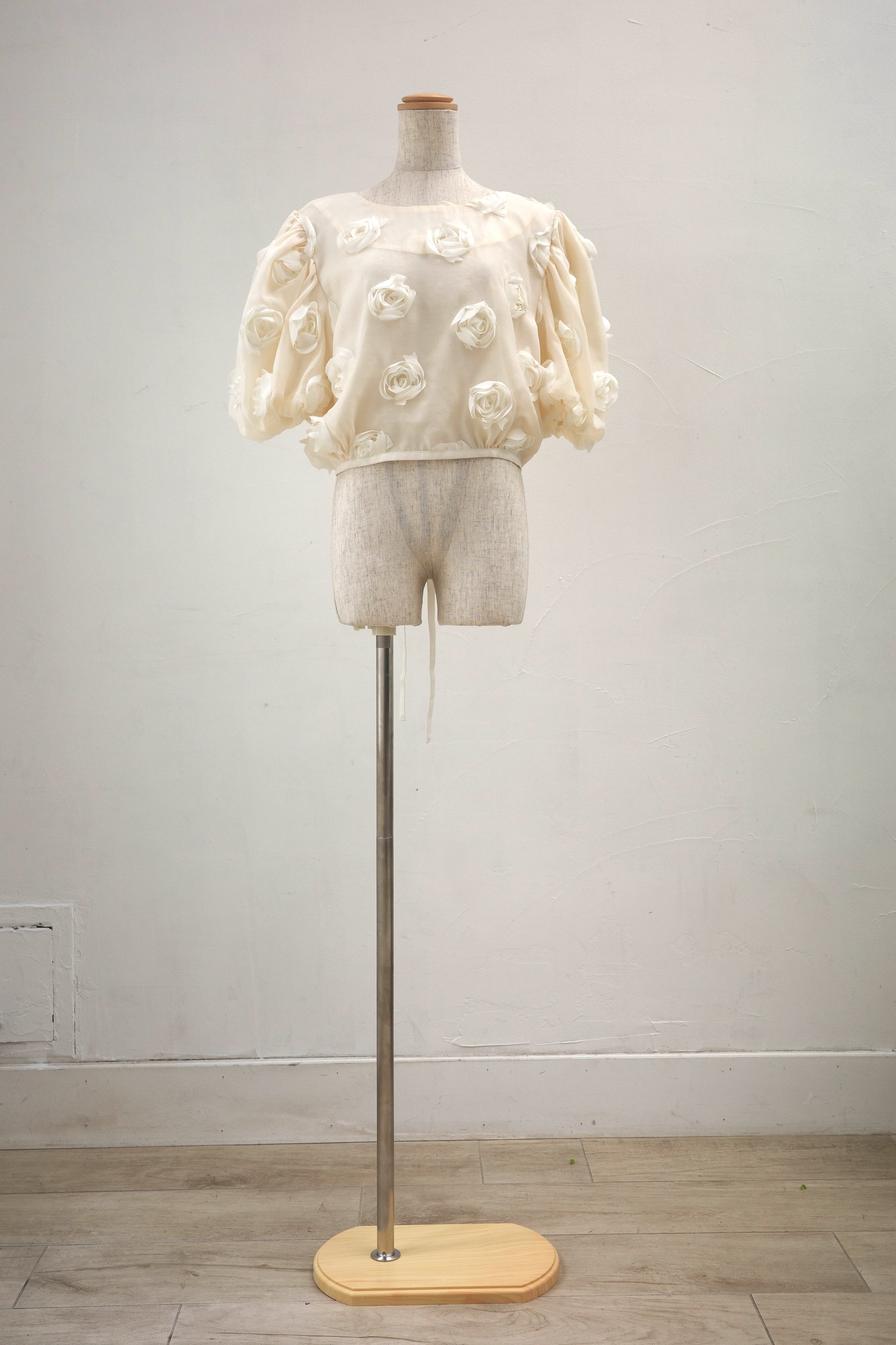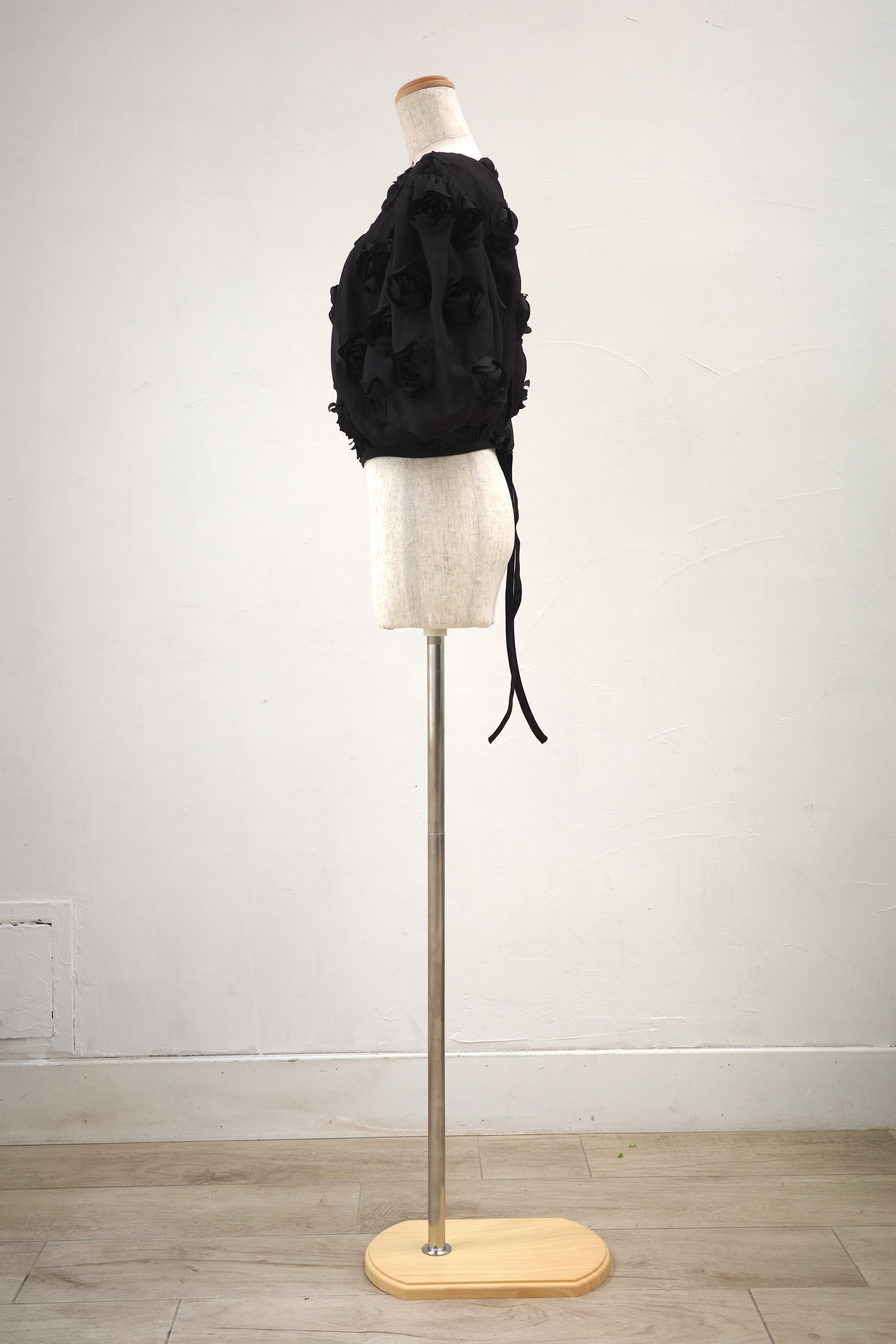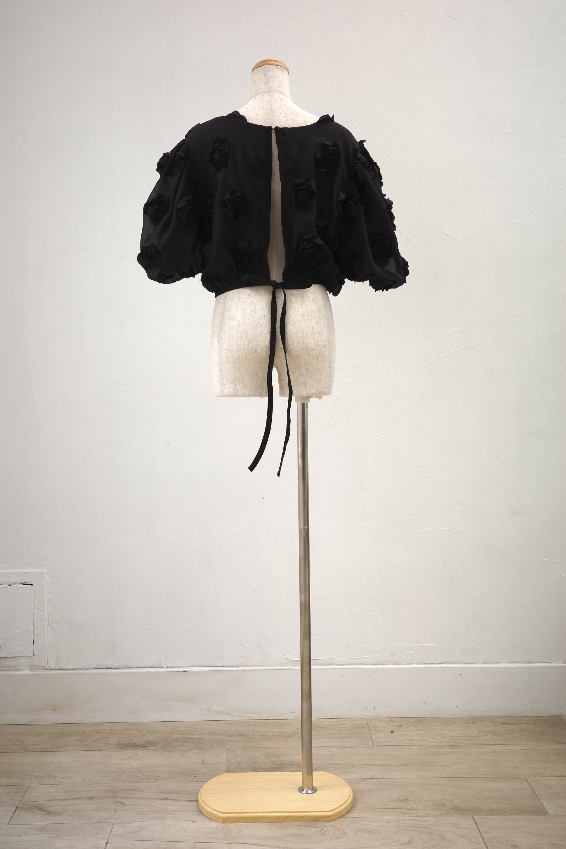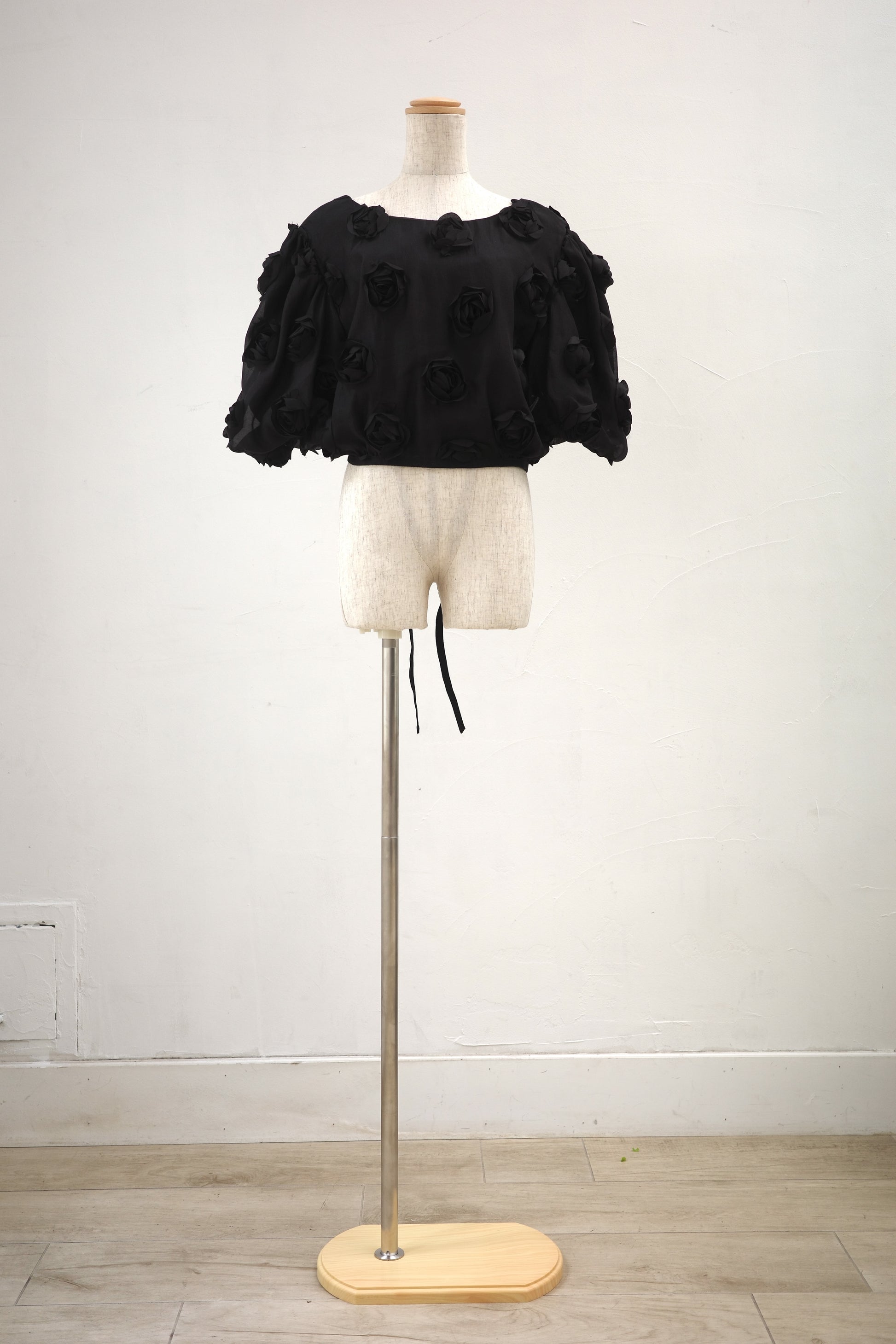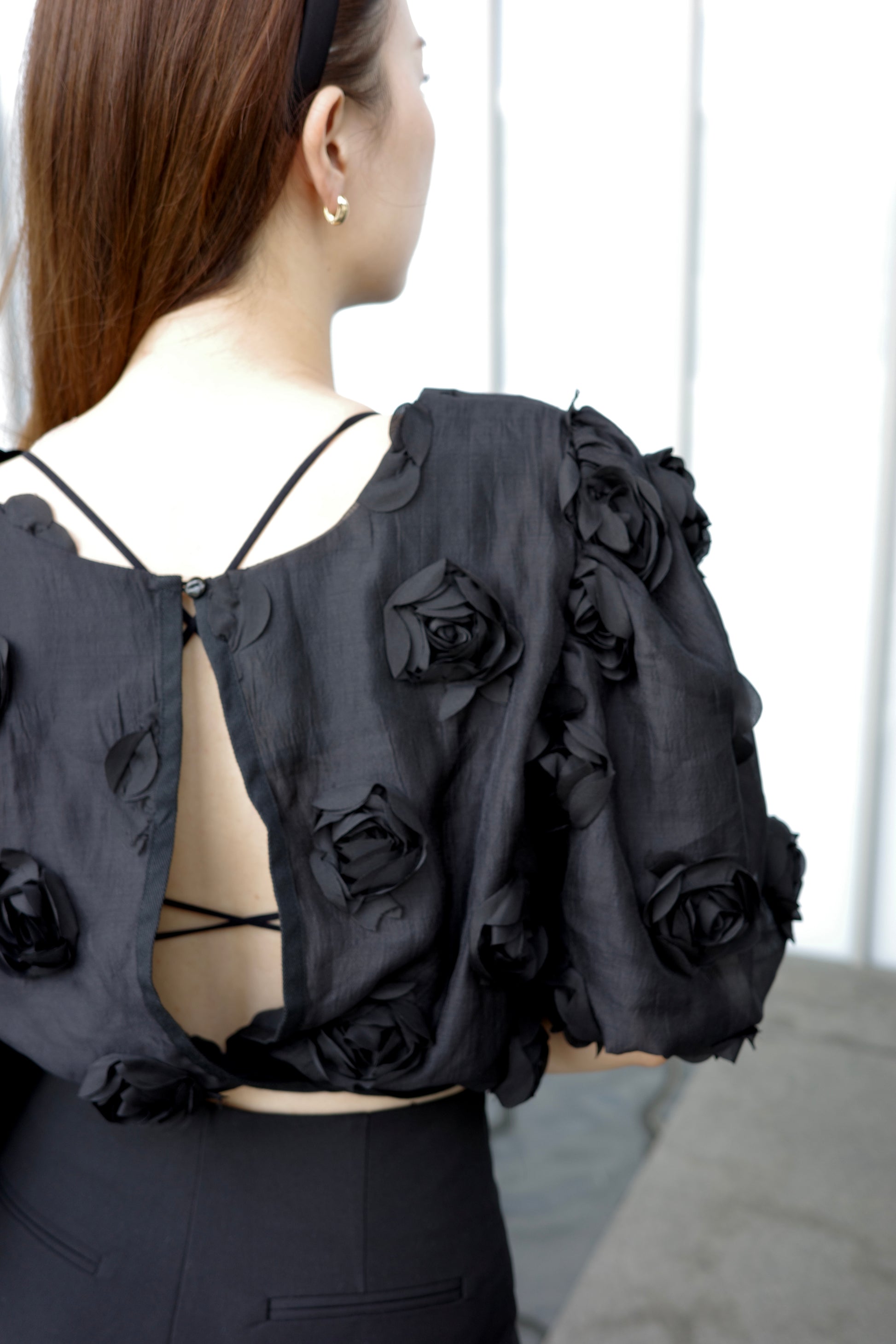 立体感のあるローズをたっぷり配置し1枚でコーデの主役に。 背中がぱっくり割れているので、前後で大きく印象が変わり気分を高めてくれます。 たっぷりボリューム感のあるトップスなので、 合わせるボトムはミニ丈やフレアデニムなどスッキリしたアイテムがおすすめです。
