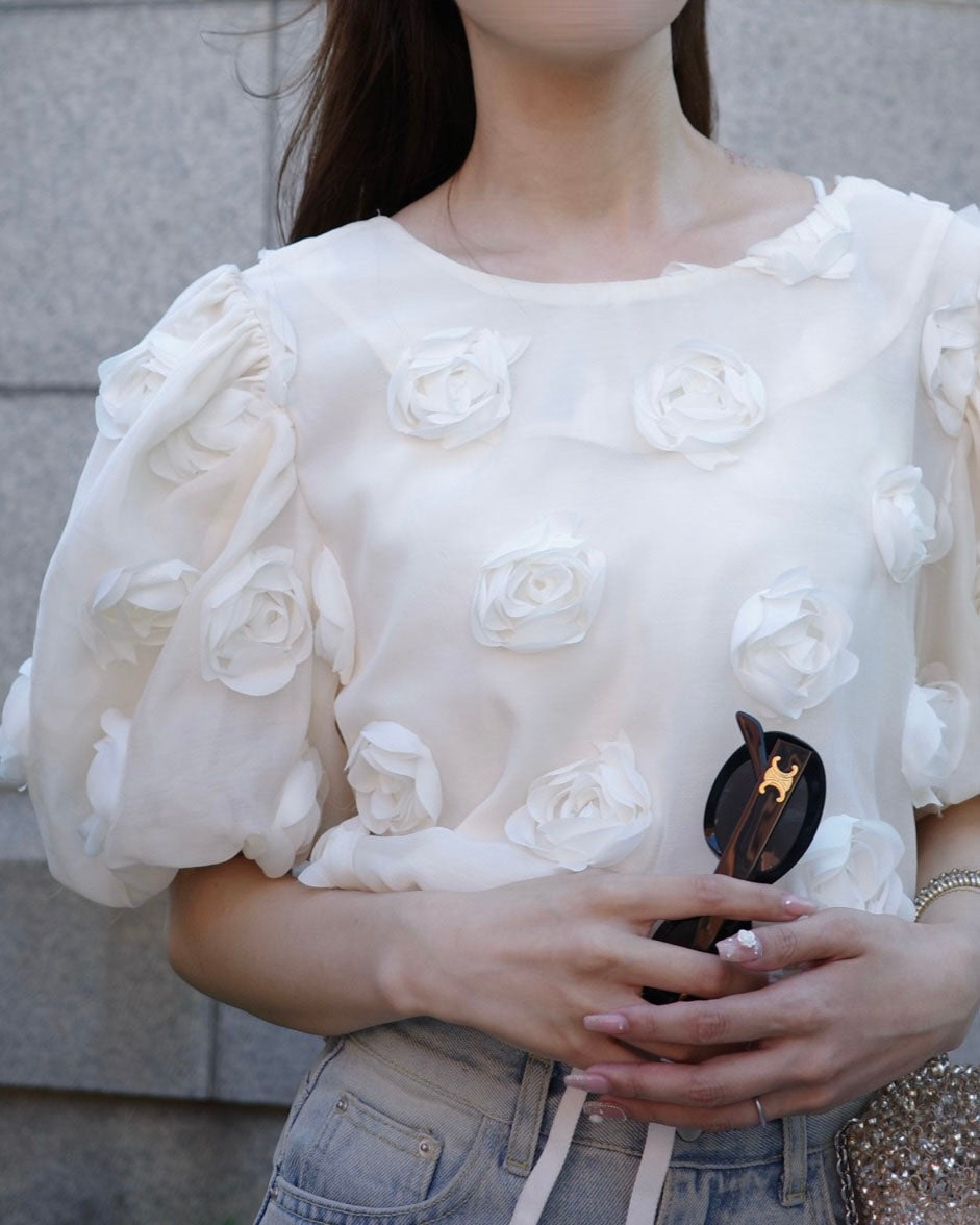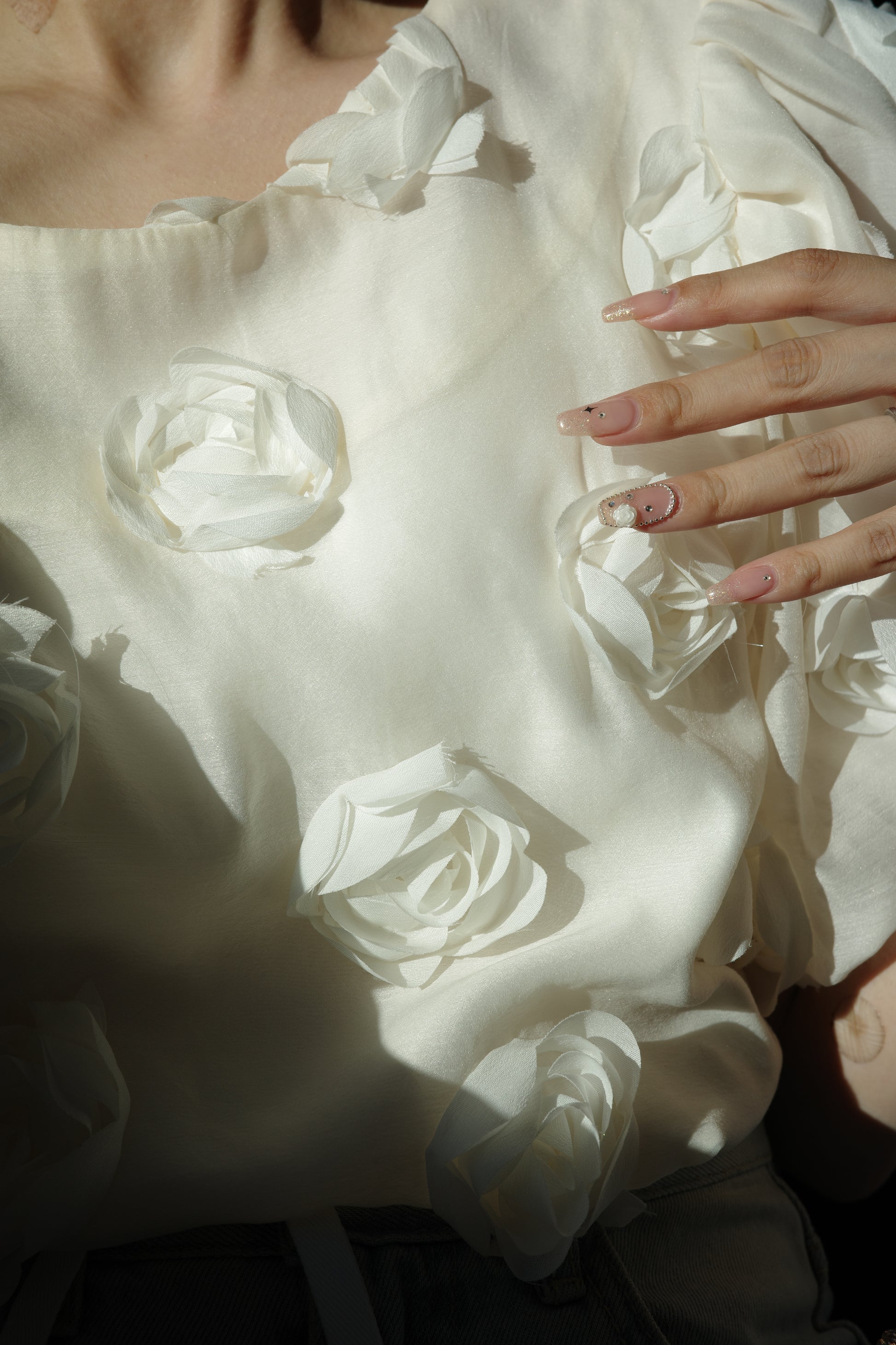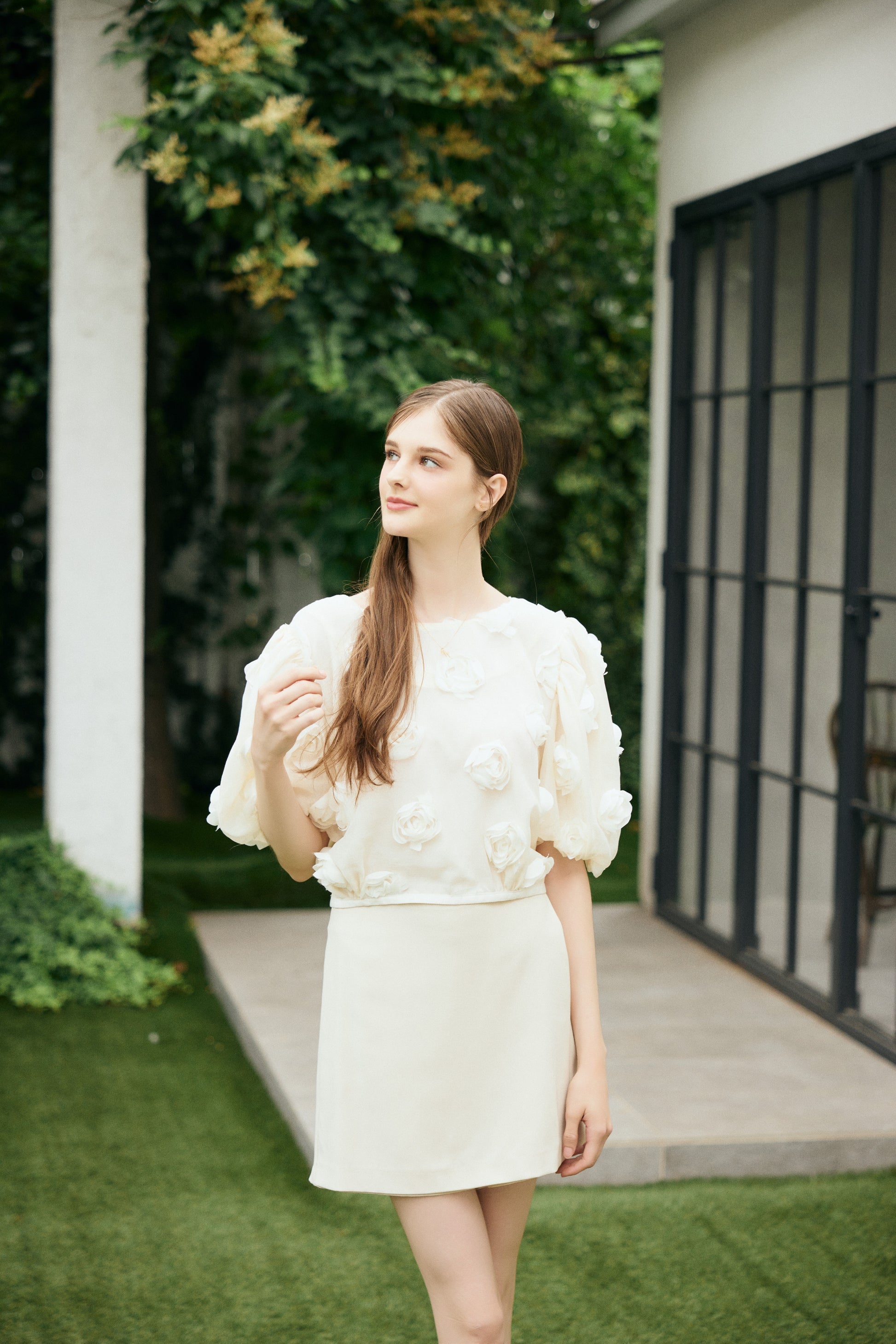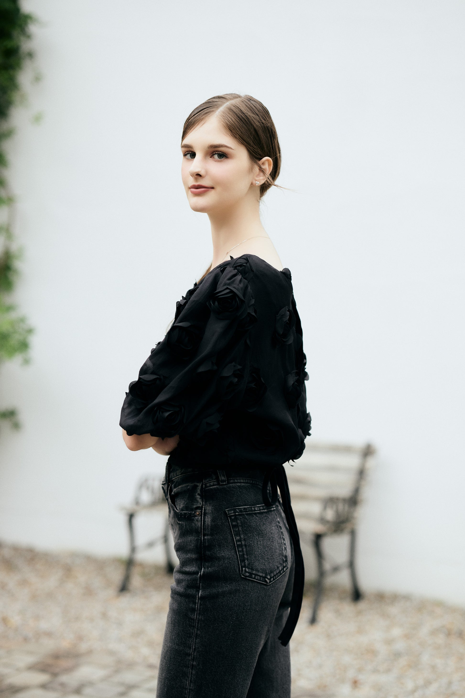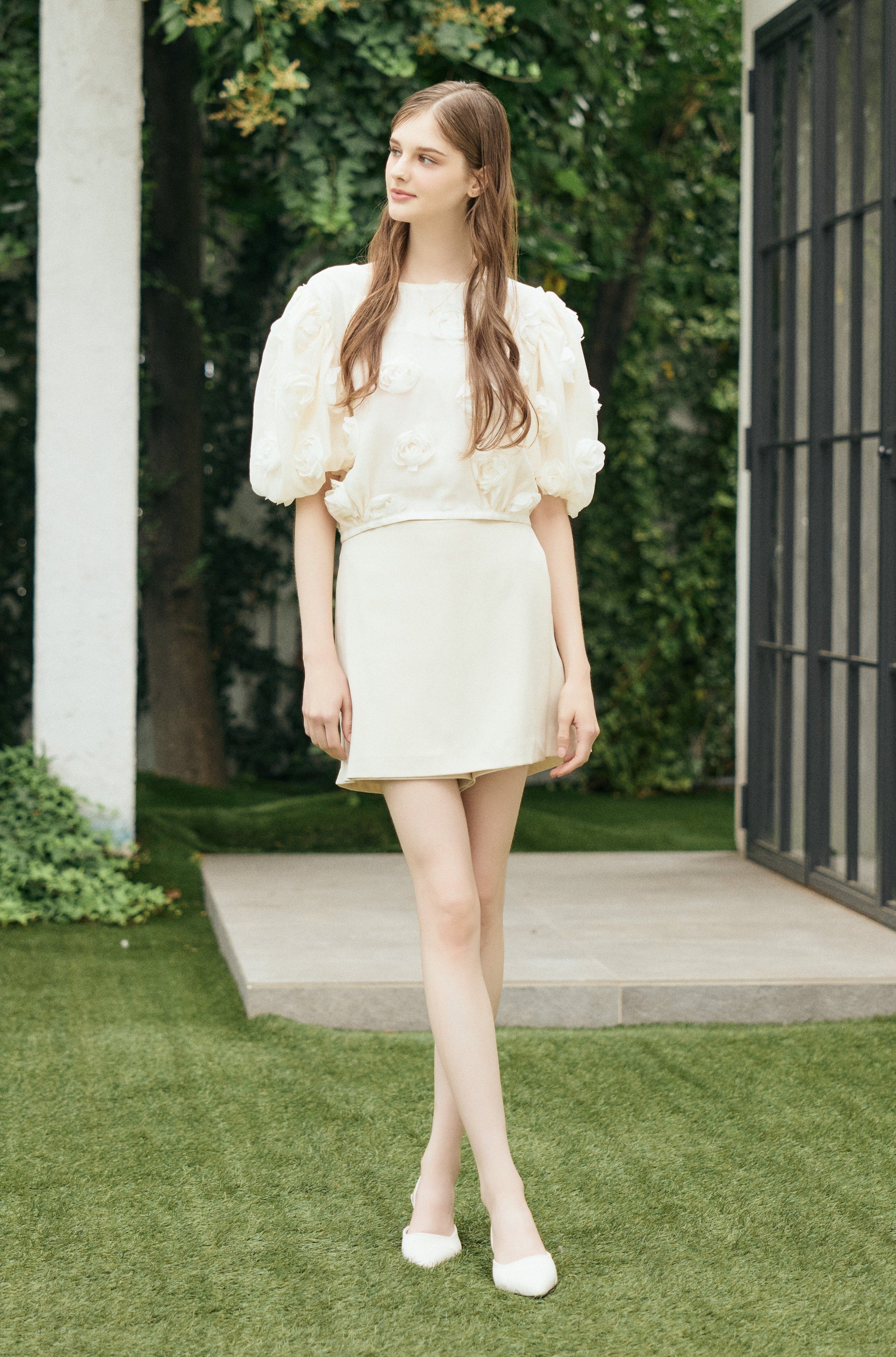 立体感のあるローズをたっぷり配置し1枚でコーデの主役に。 背中がぱっくり割れているので、前後で大きく印象が変わり気分を高めてくれます。 たっぷりボリューム感のあるトップスなので、 合わせるボトムはミニ丈やフレアデニムなどスッキリしたアイテムがおすすめです。