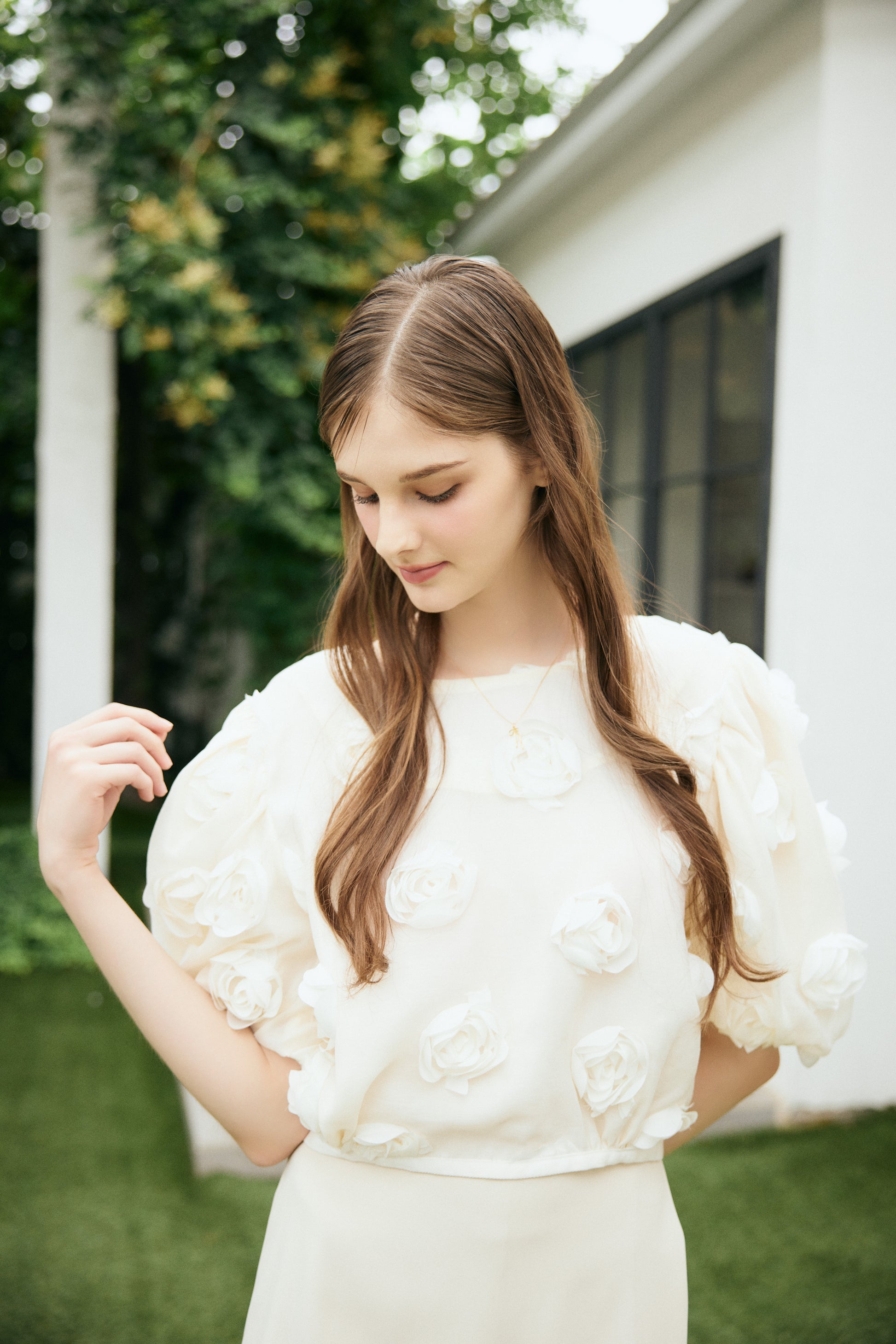 今年トレンドのローズモチーフをたっぷり散りばめたトップス