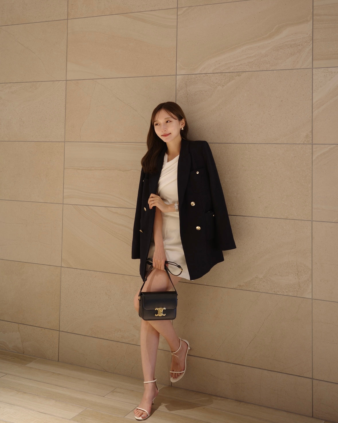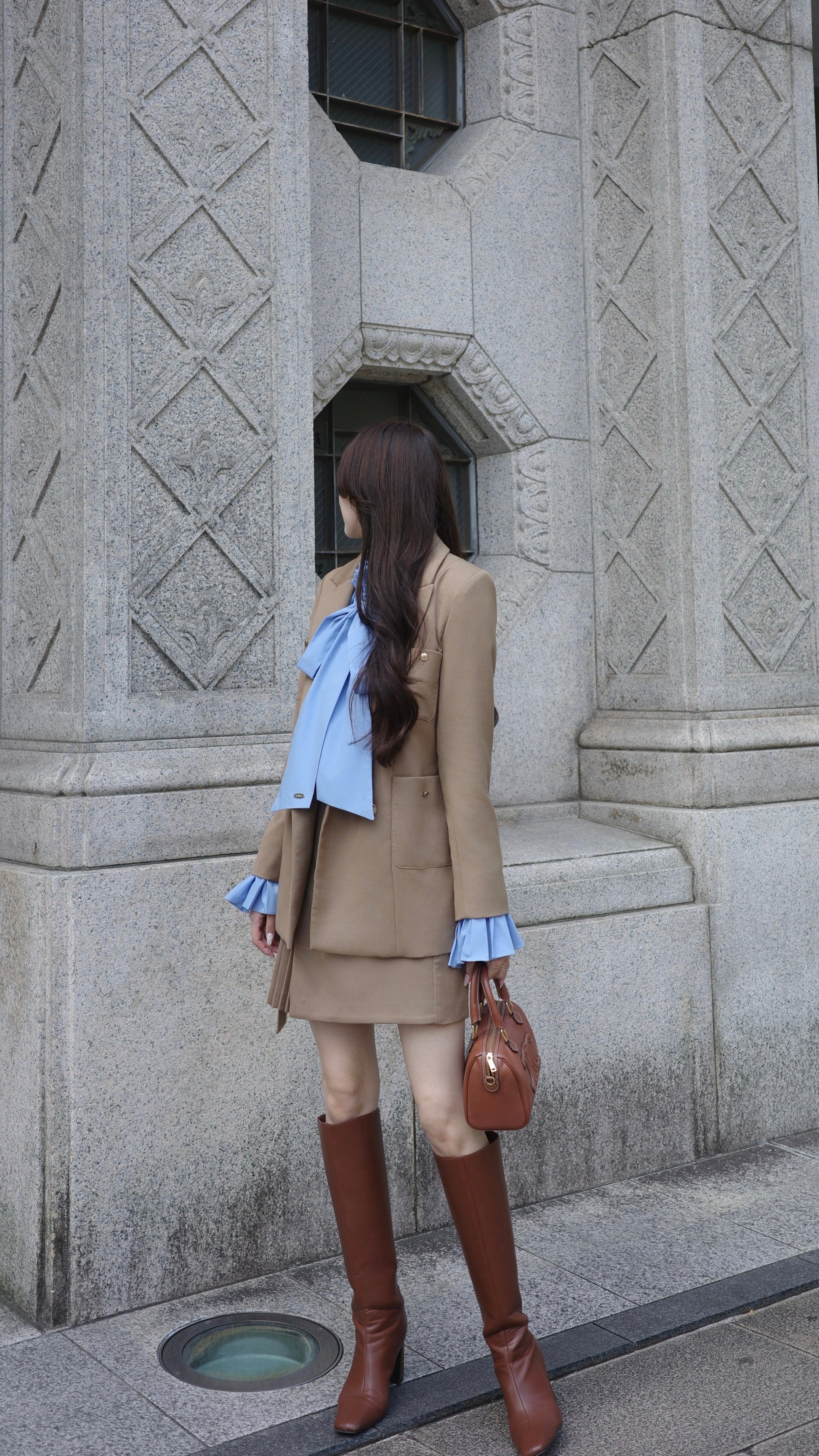 肉厚な生地にゴールドのボタンが映えて、サラッと羽織るだけでどんなコーデも格上げしてくれます。