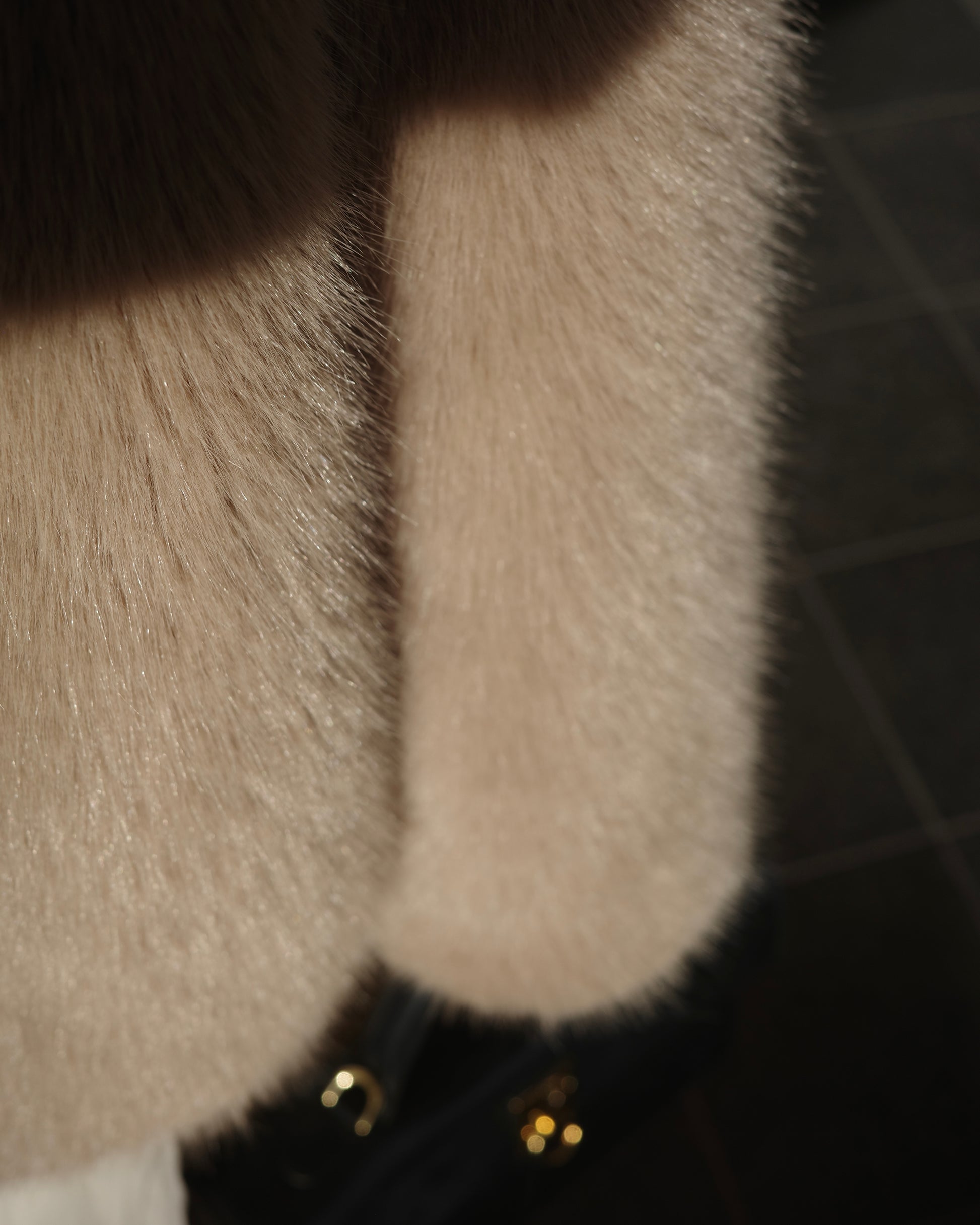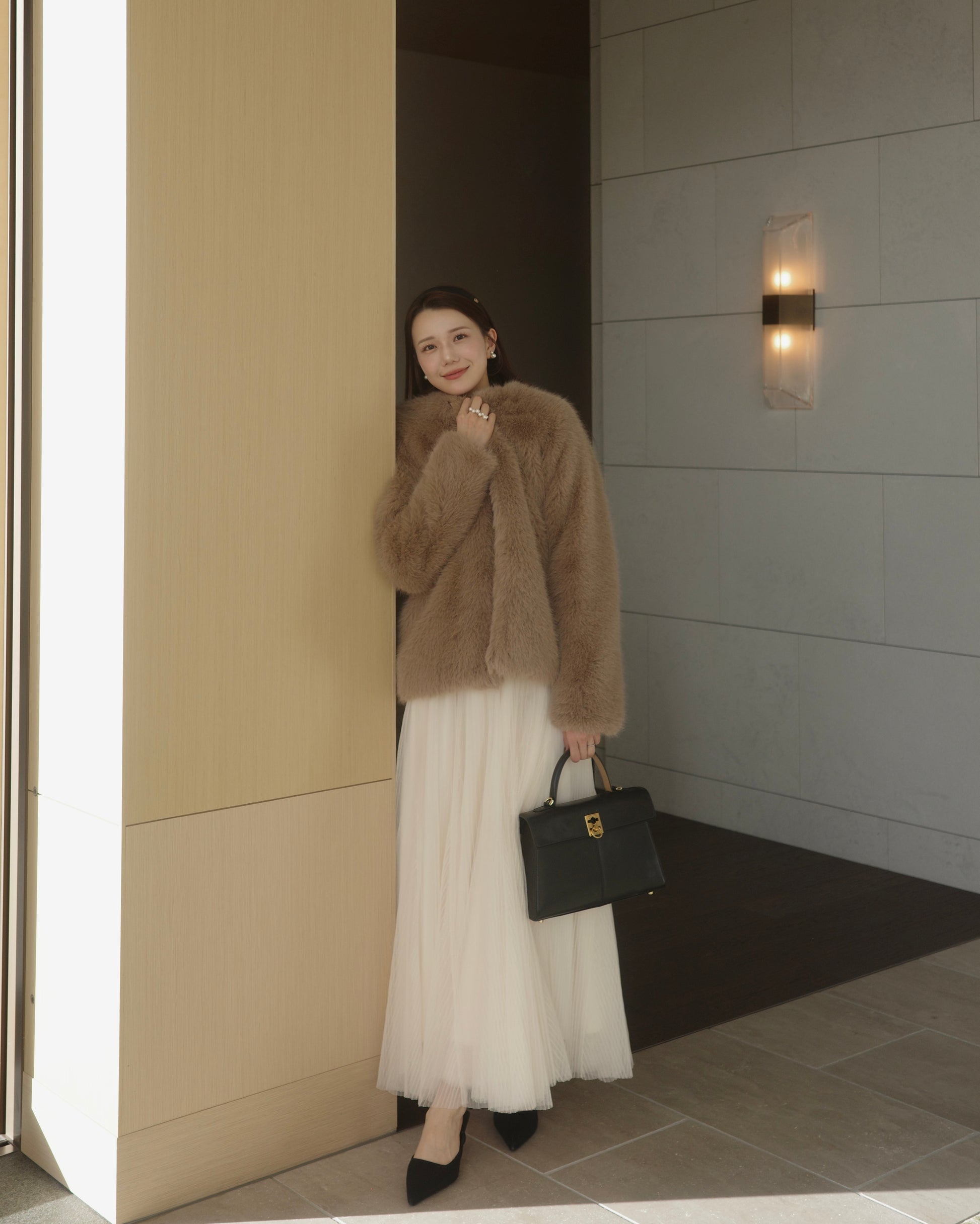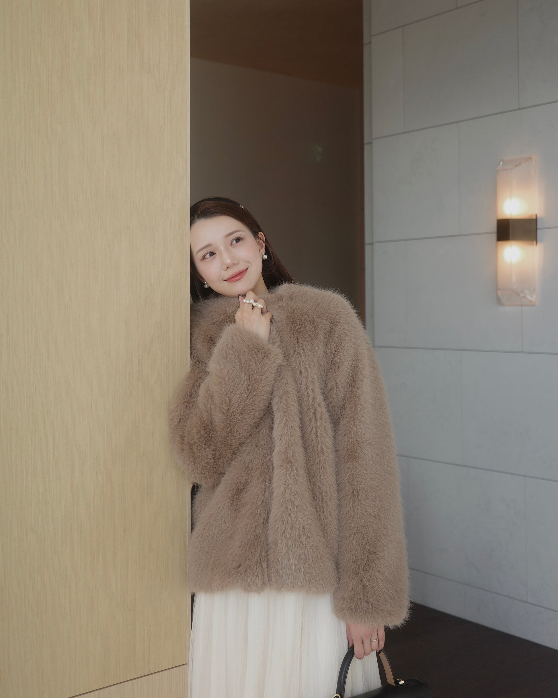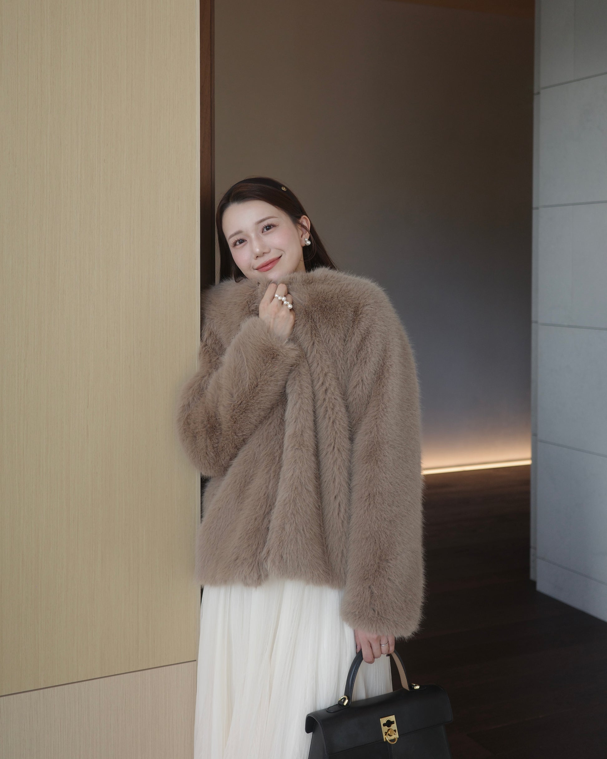 軽やかでありながらリッチな質感を楽しめる、2WAY仕様のファーブルゾン。 毛の密度が高く、リアルファーライクな生地で仕立てた、ラグジュアリー感漂う1枚。 大きめの襟と、ころんとしたシルエットが大人レディーにぴったりなアイテムです。 襟は取り外し可能な2way仕様にしているので、お好みやコーディネートに合わせてノーカラーでも着て頂けます。 ふんわりとした柔らかな長毛のファーが肌触り抜群で、カジュアルからエレガントまで多彩な着こなしを楽しめます。 ドレスやお呼ばれなどオケージョンの羽織としてもおすすめです。