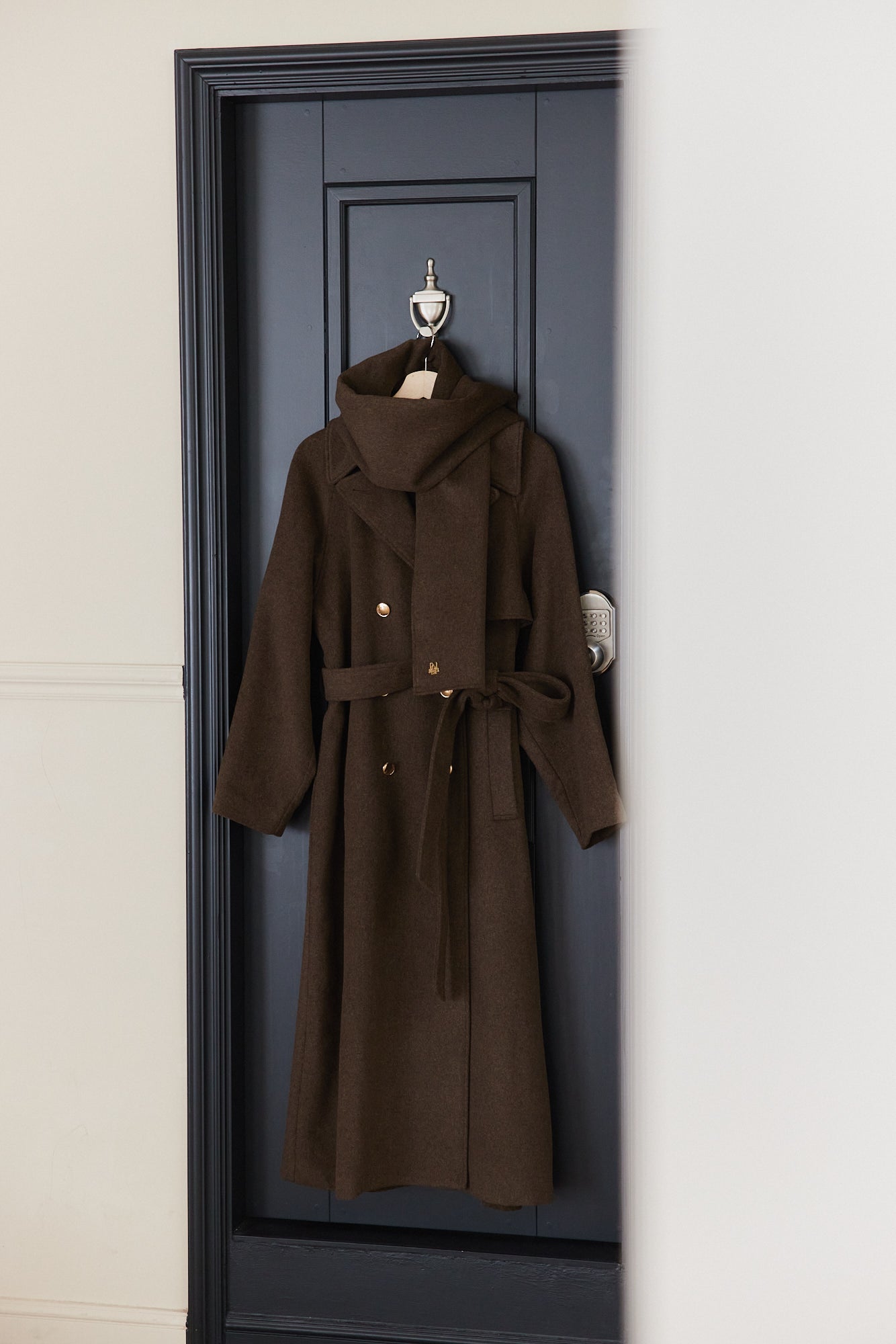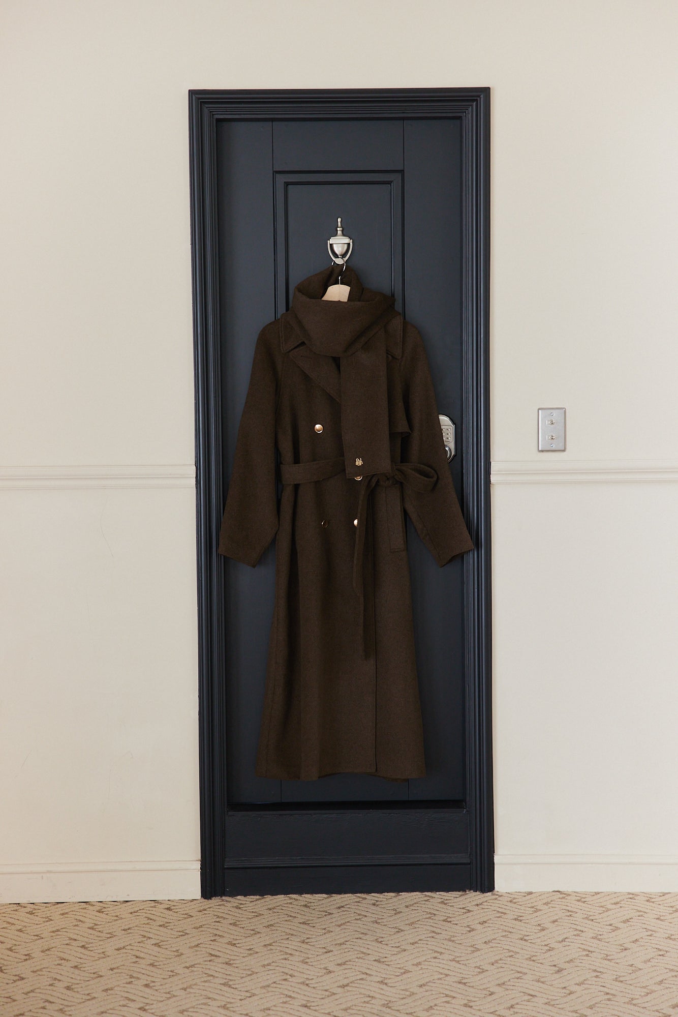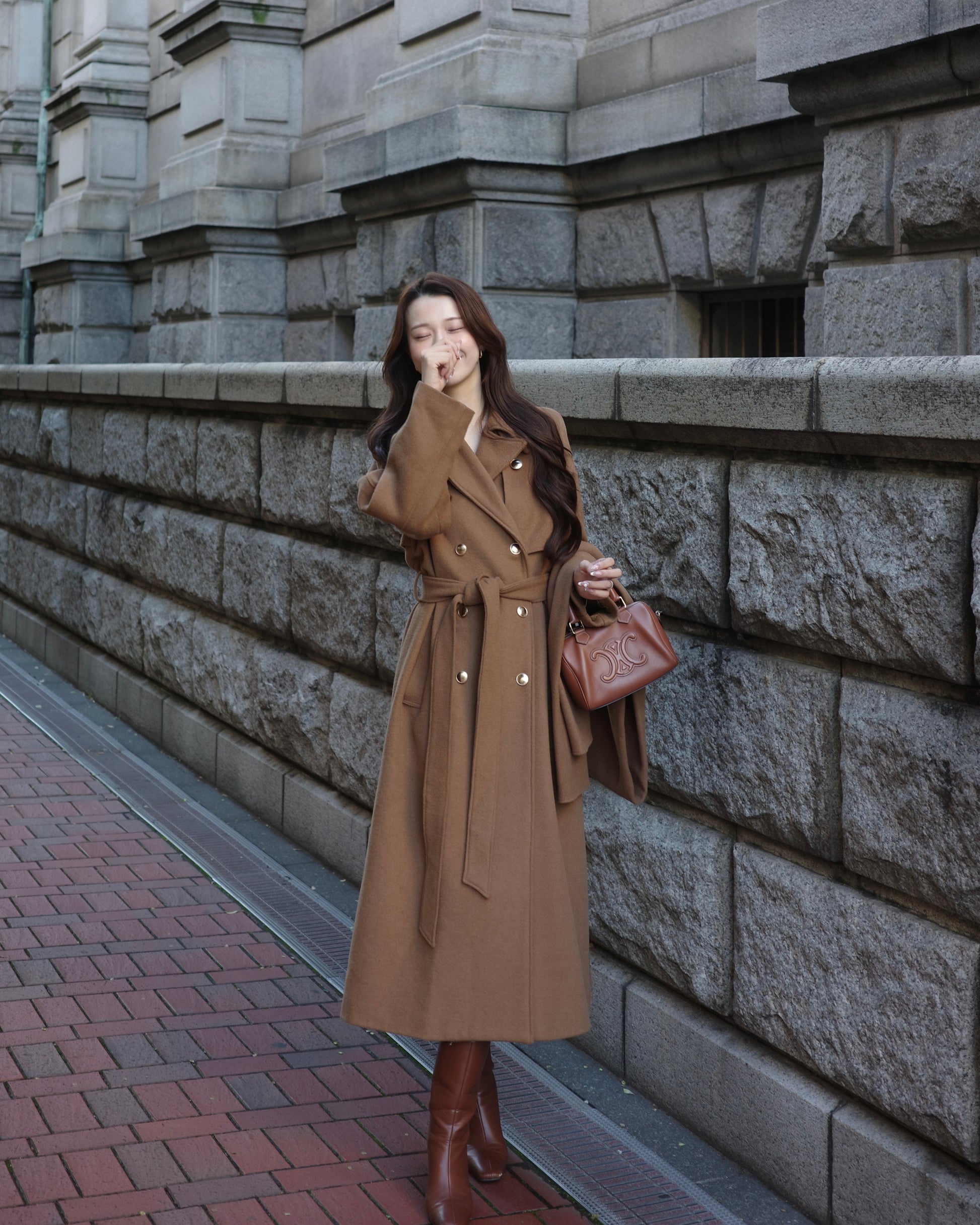 シンプルながらも上品さを感じさせる、上質なロングトレンチコート。
