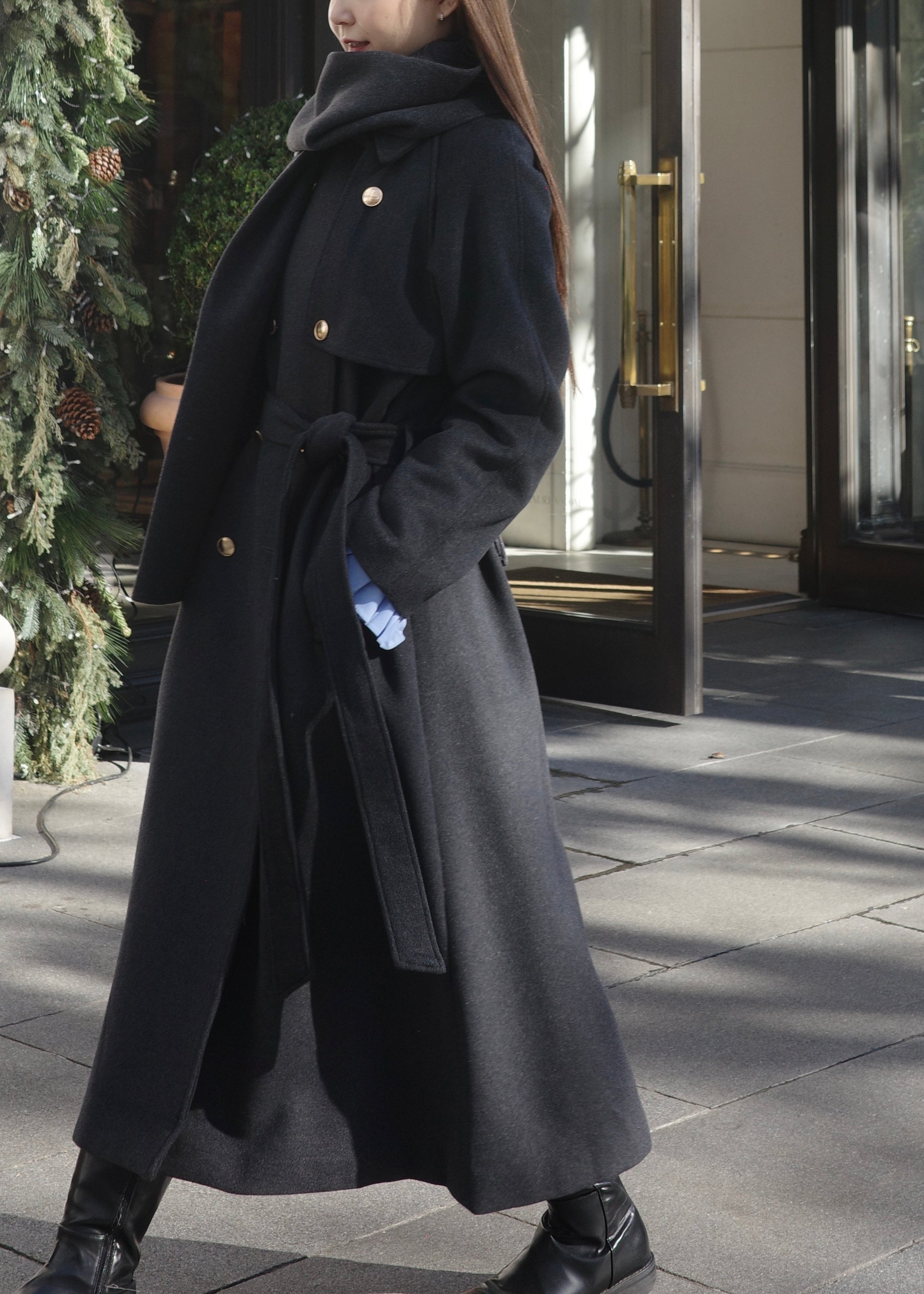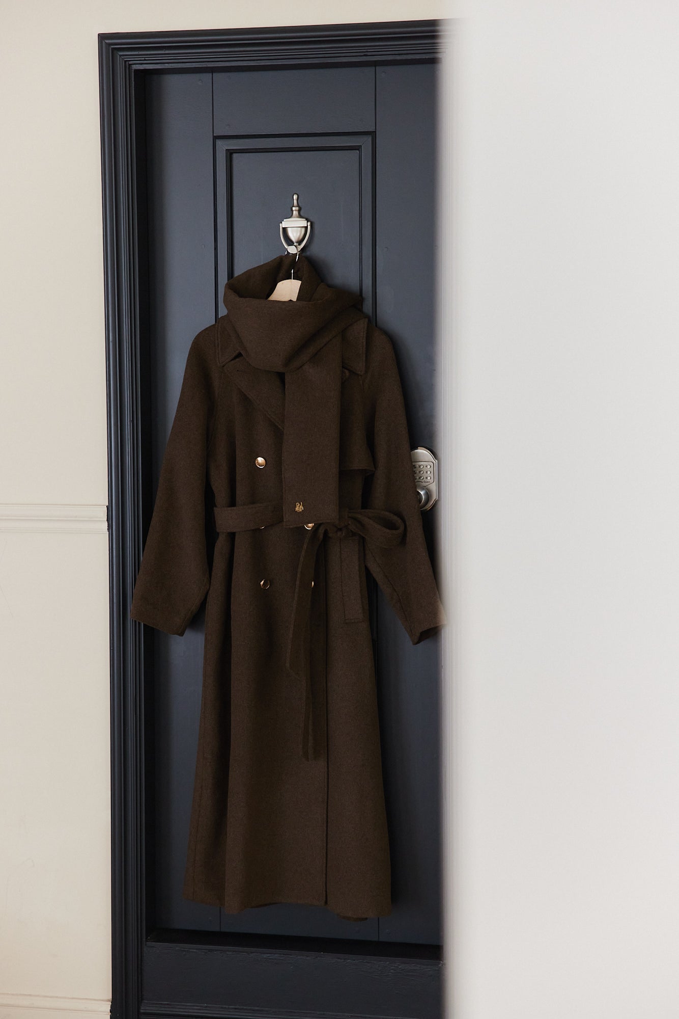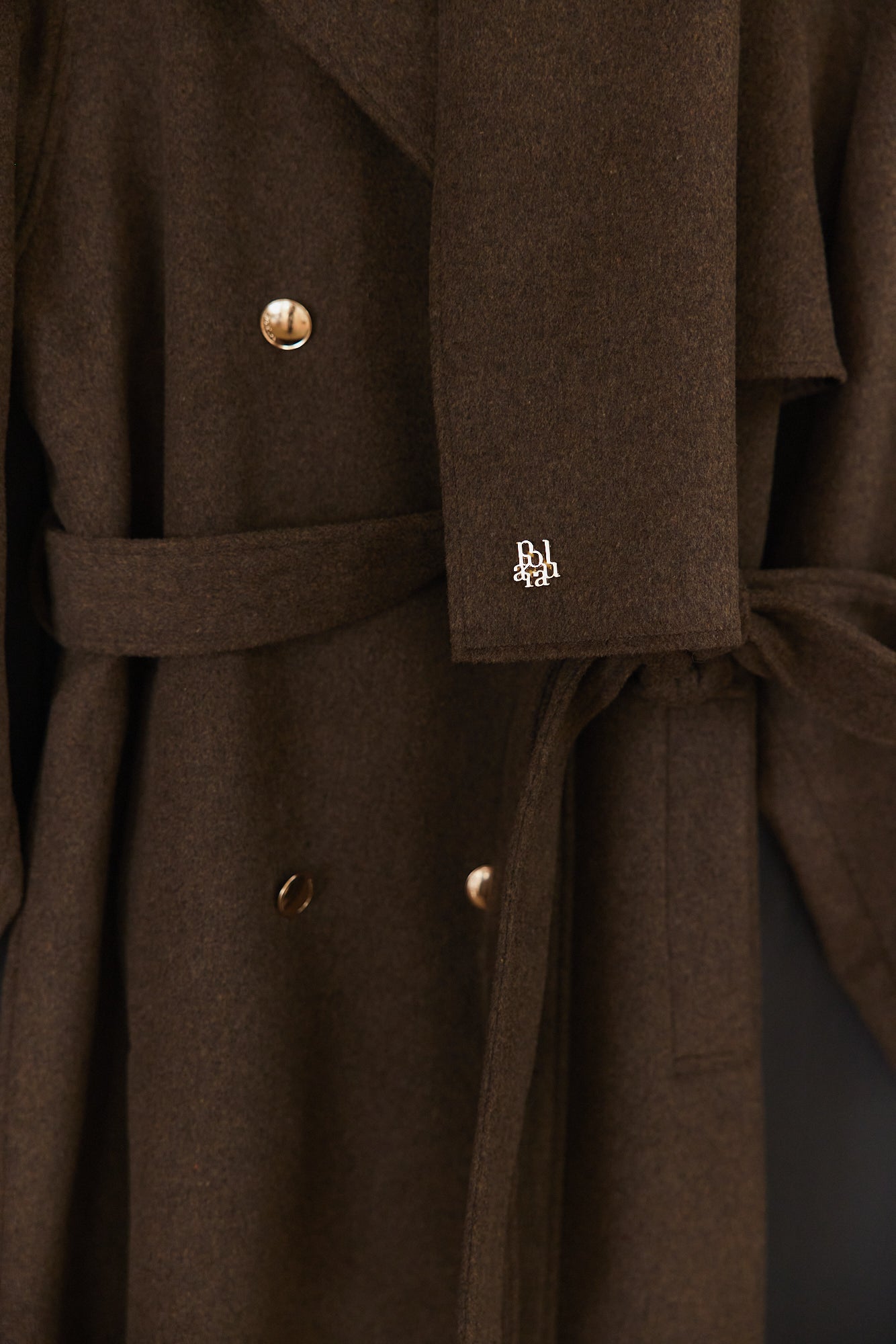 シンプルながらも上品さを感じさせる、上質なロングトレンチコート。