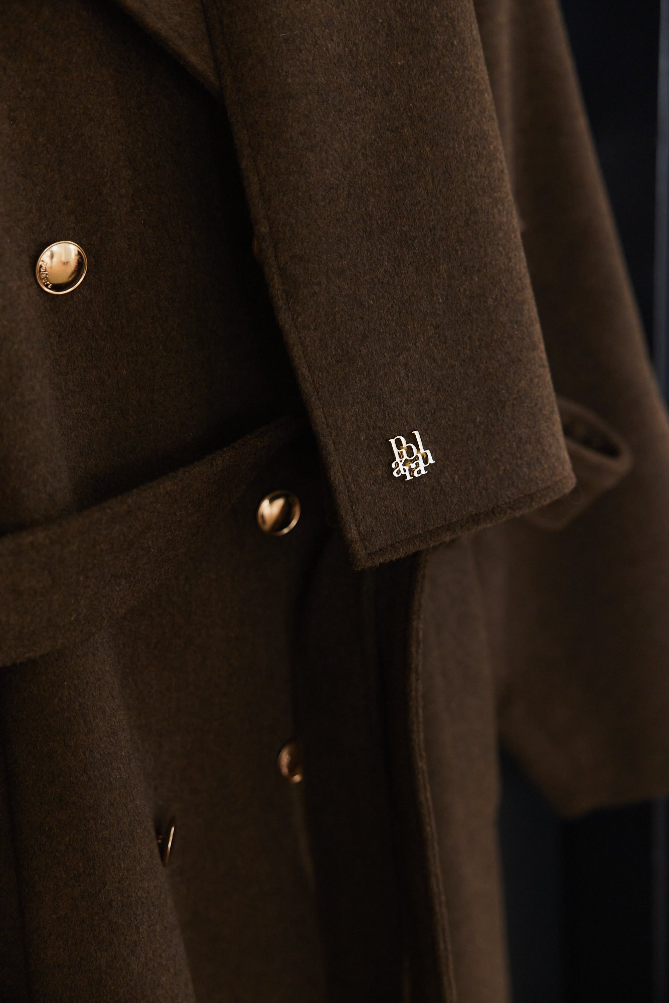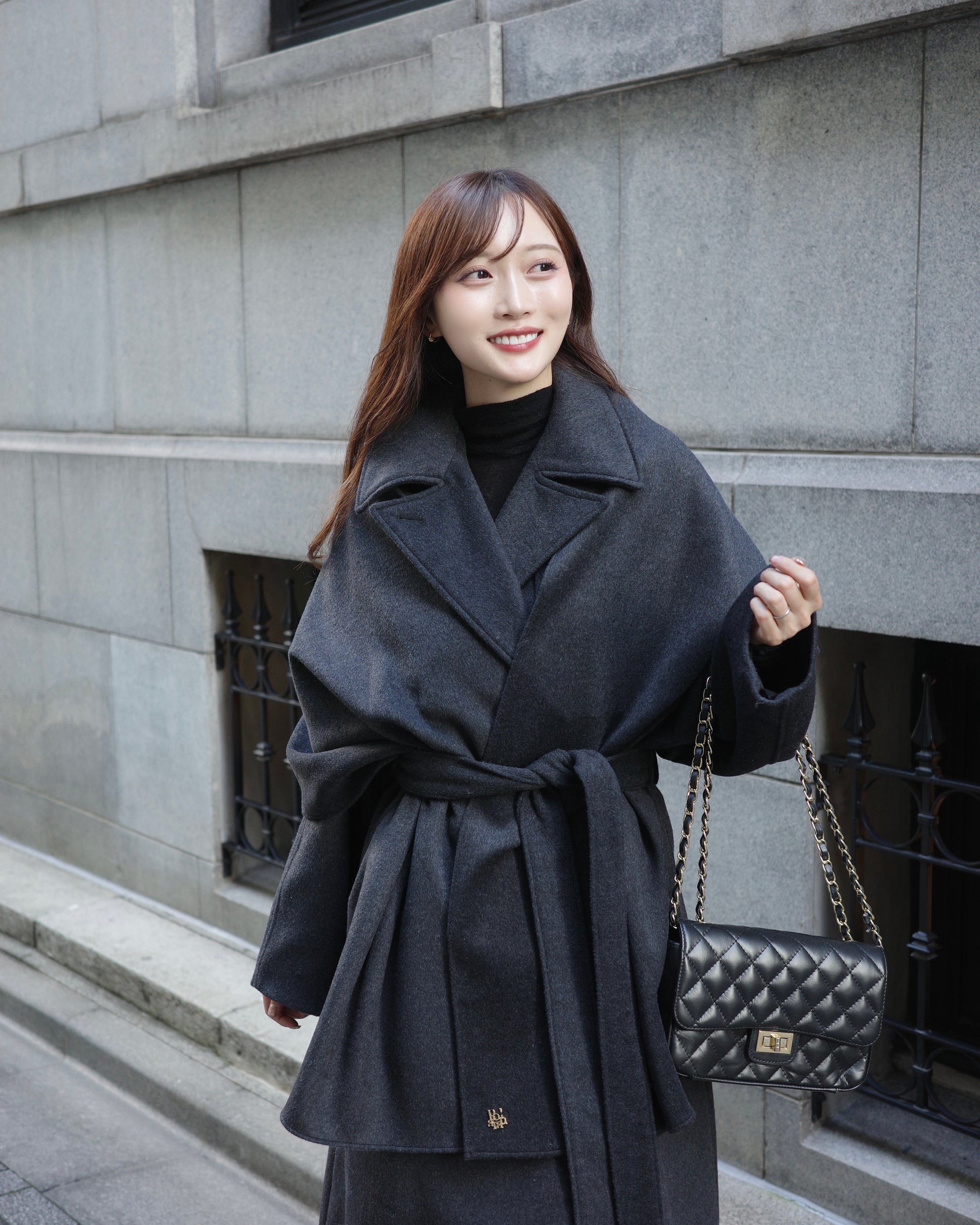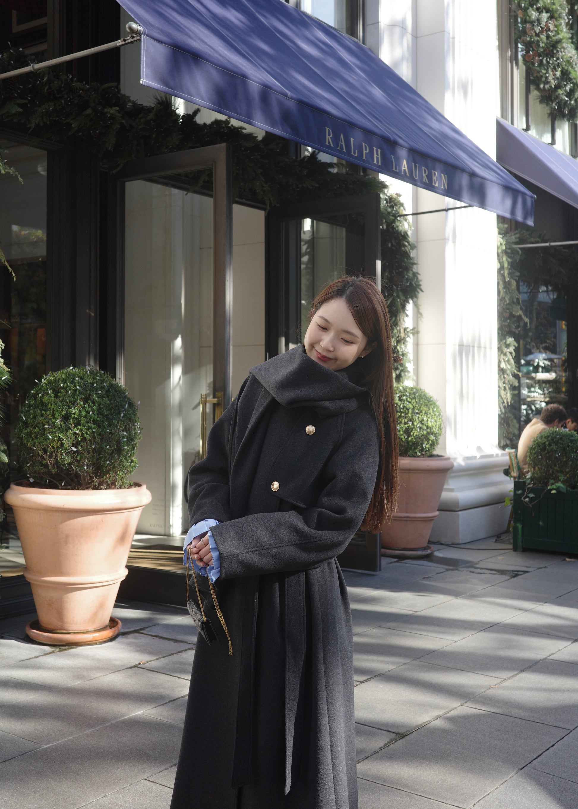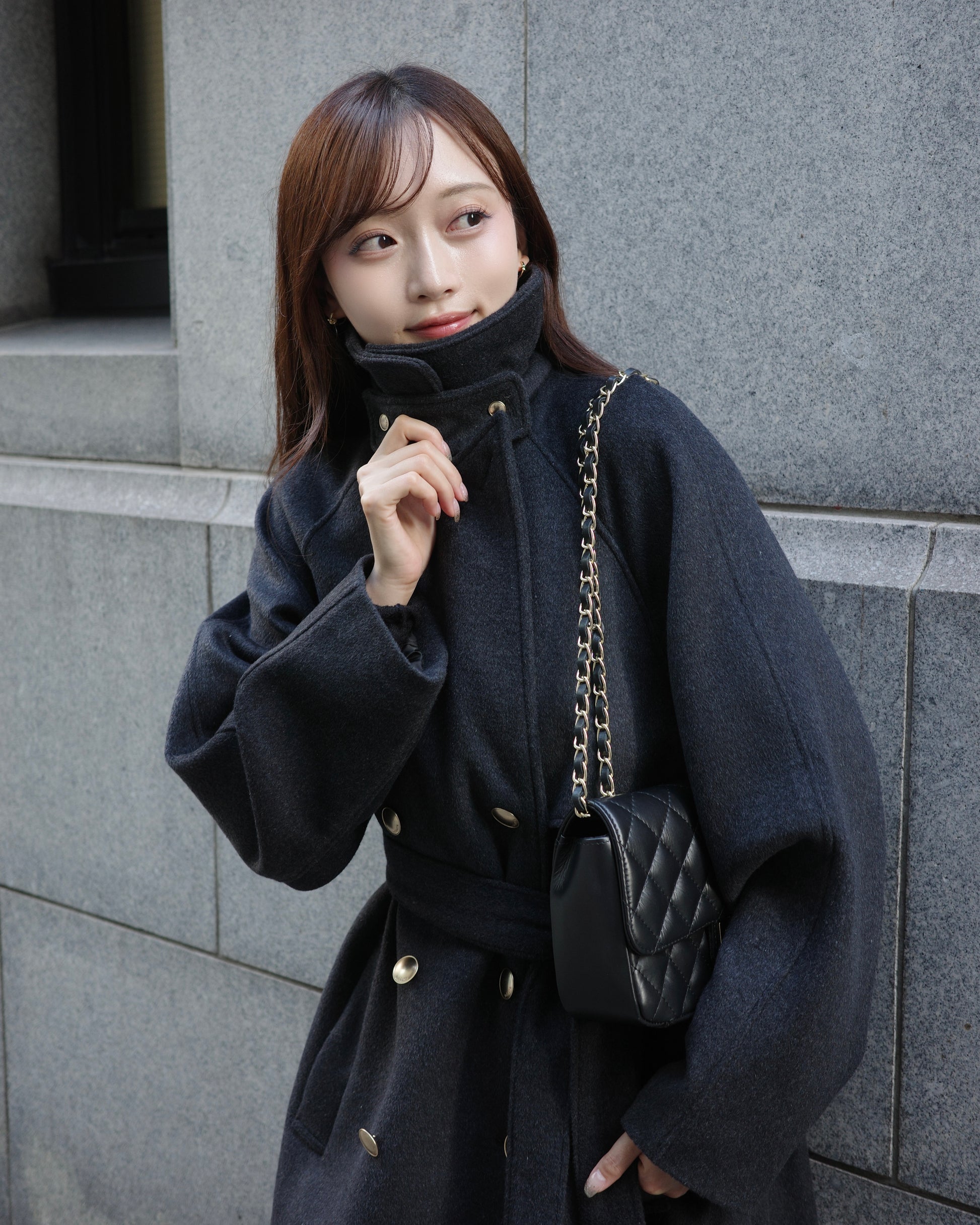トレンドのピークドラペルとロングレングスが、大人レディーにぴったりなアイテムです。