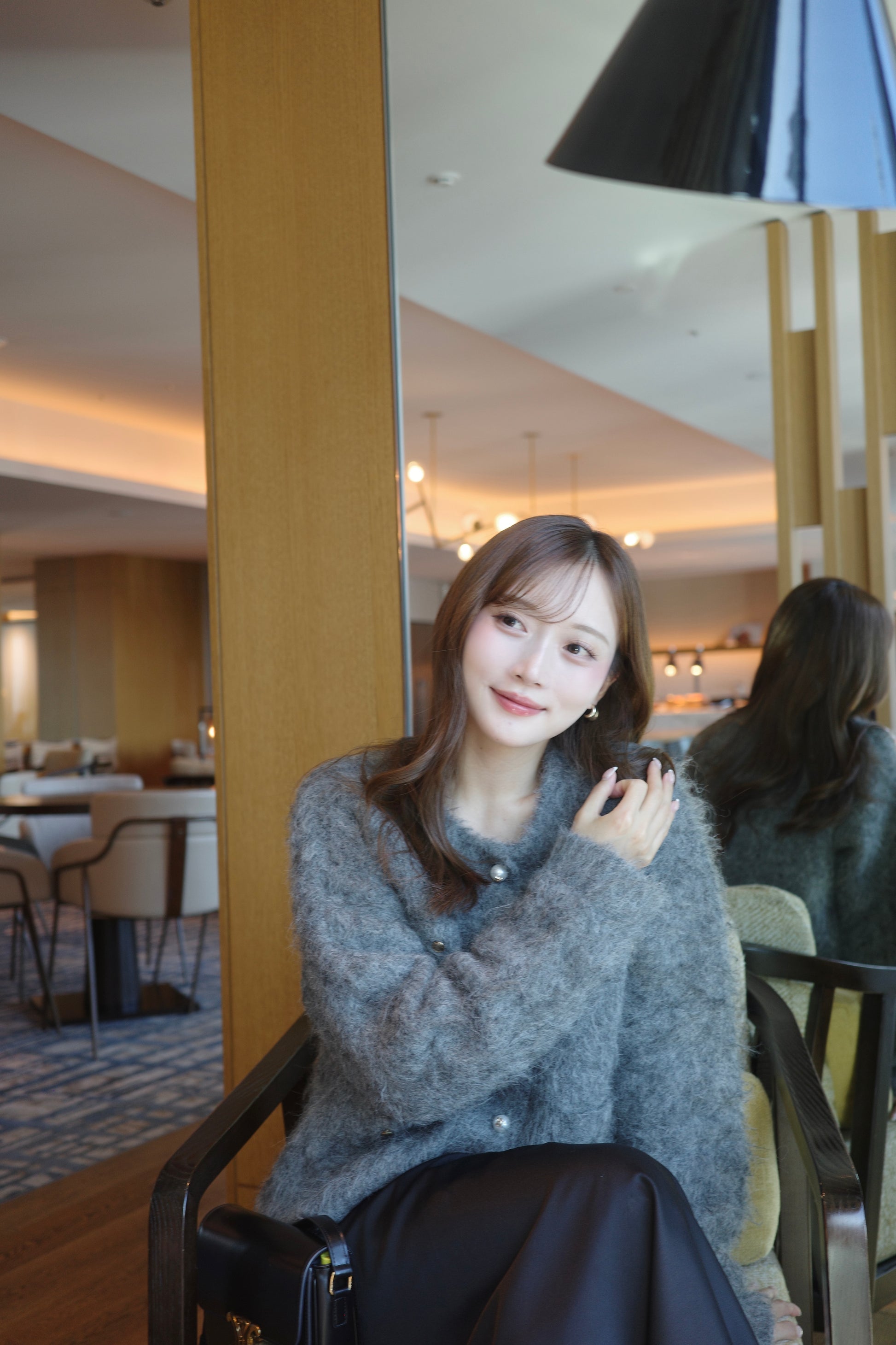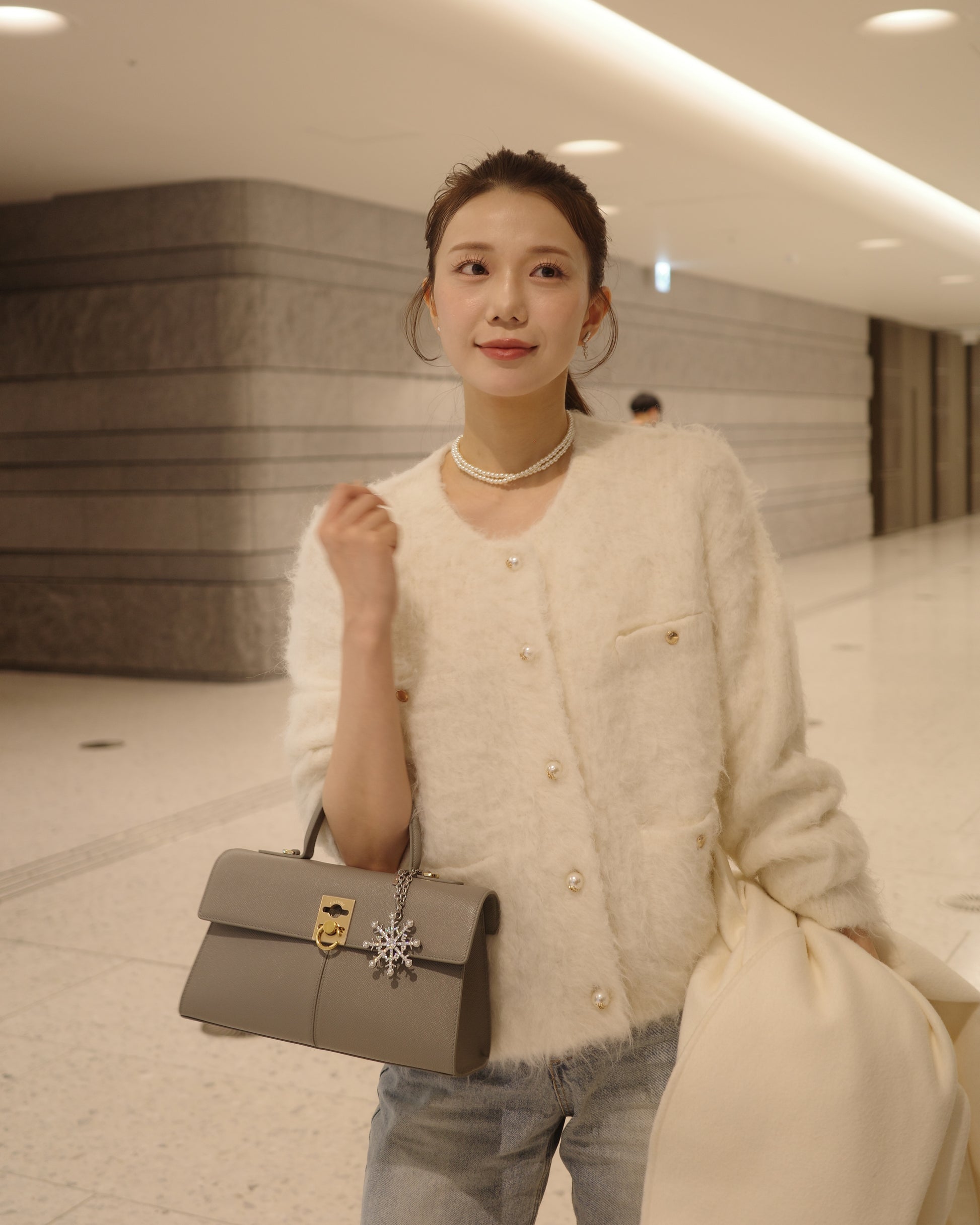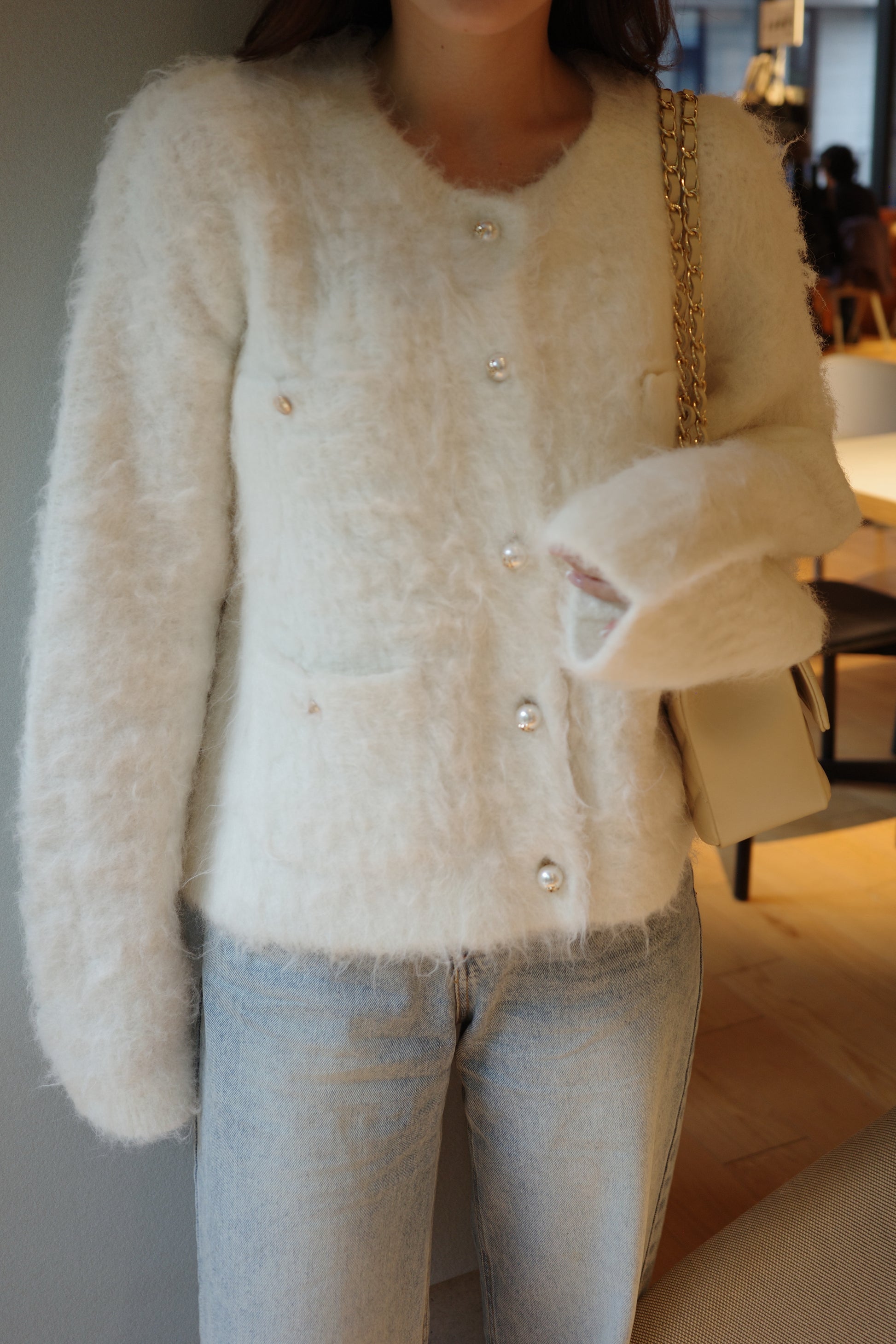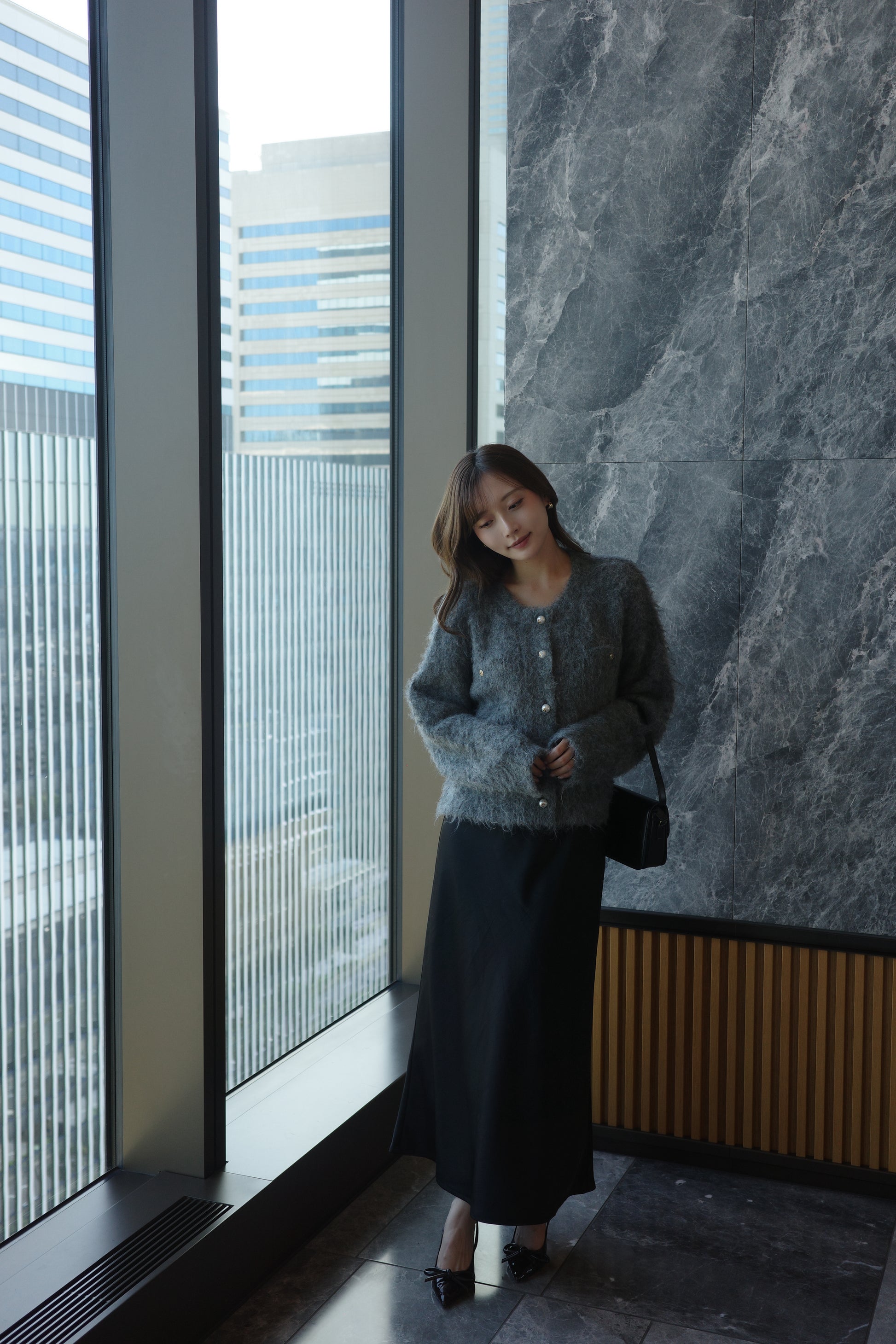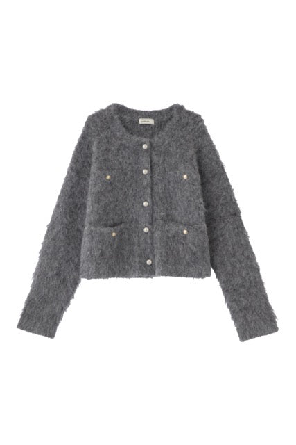 フロントには大ぶりのpoláuraオリジナルパール釦をあしらい、羽織るだけで華やかさをプラスする主役級アイテム。
