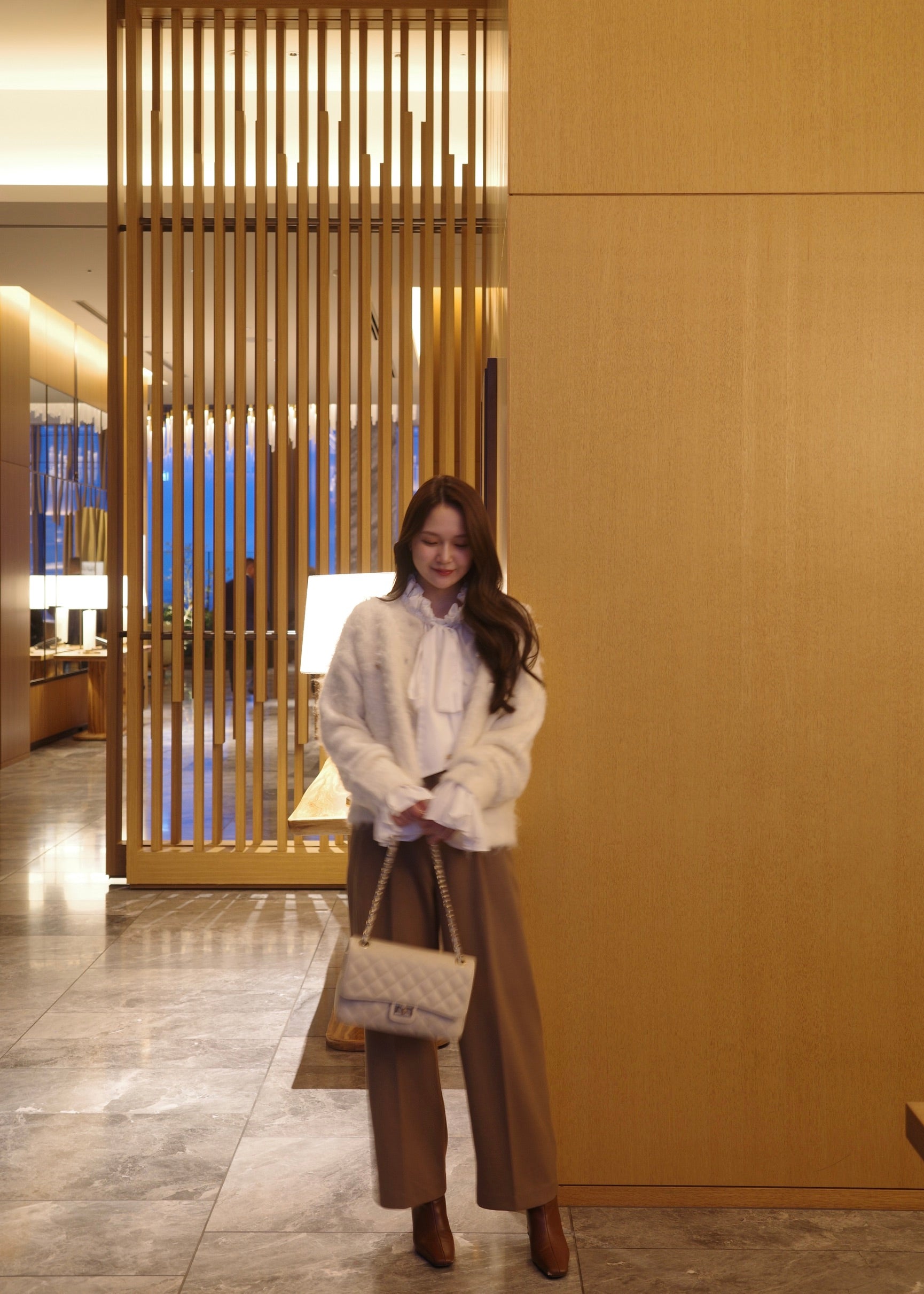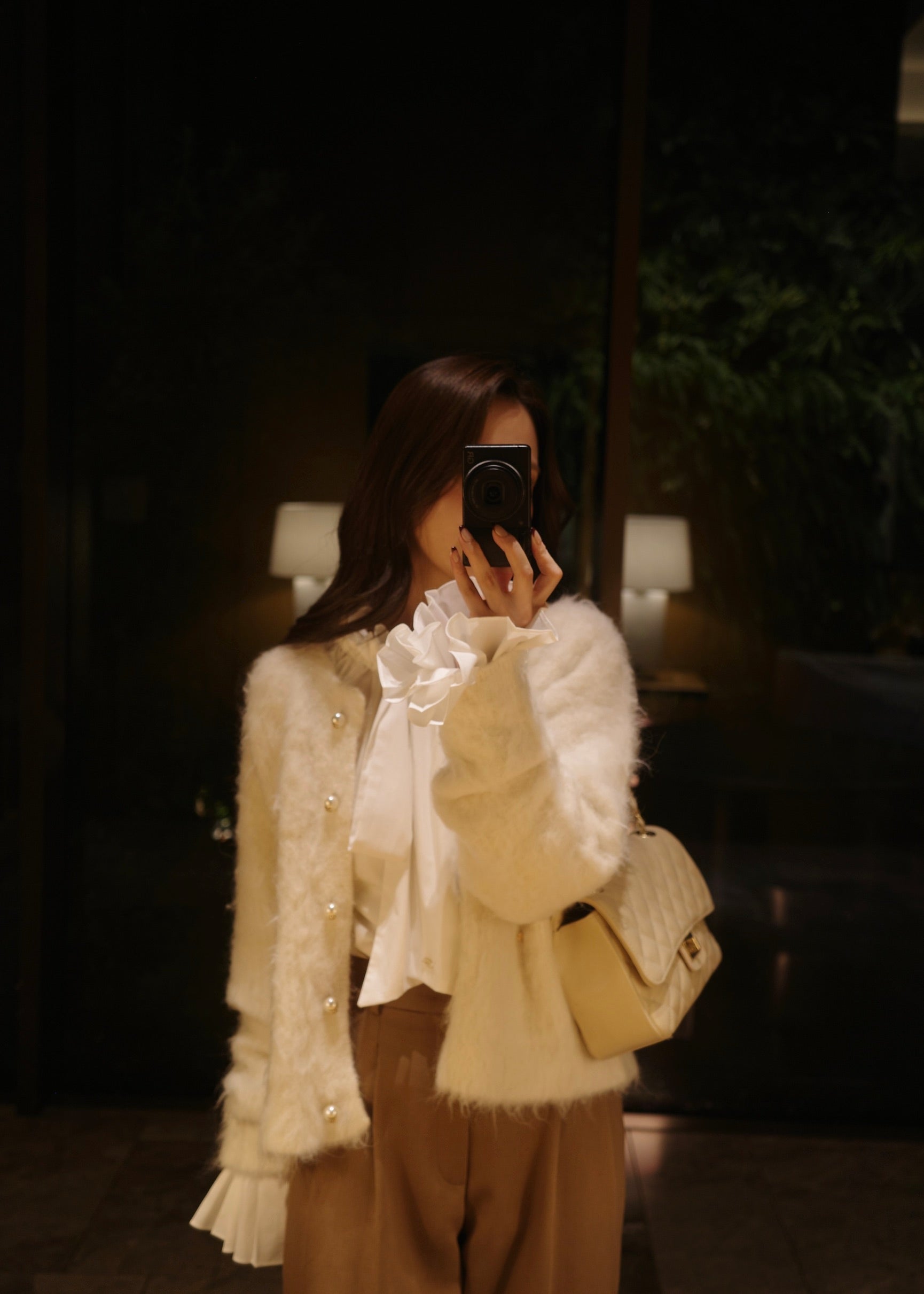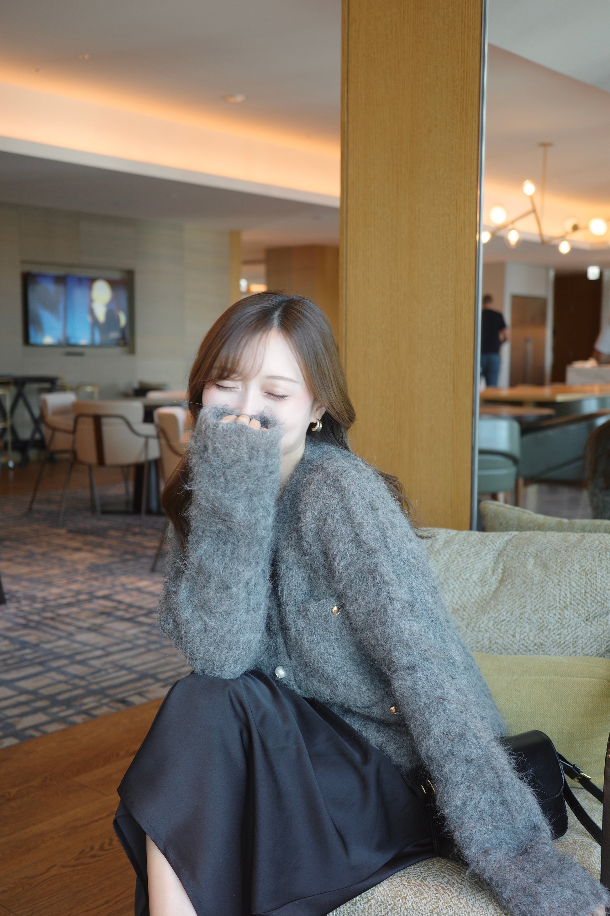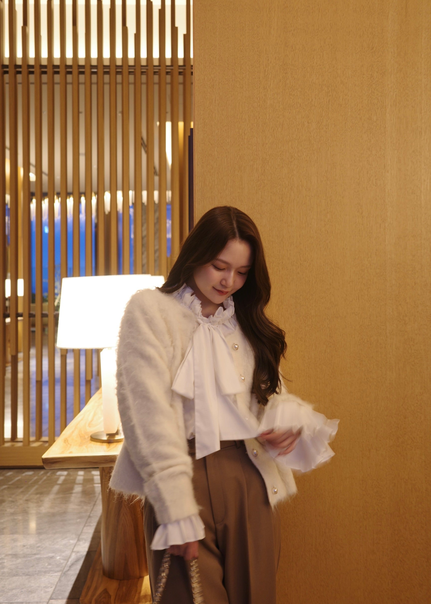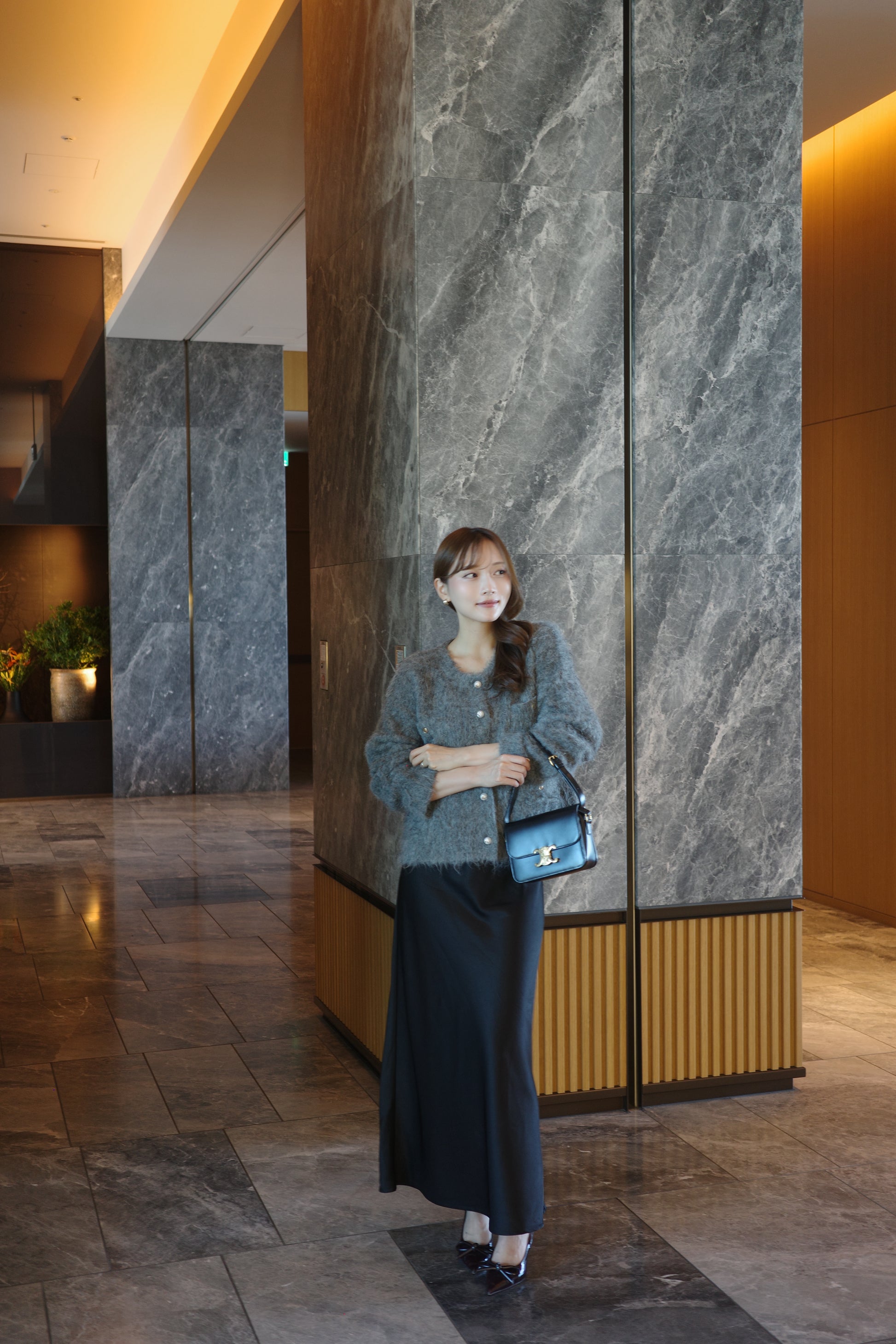 フロントには大ぶりのpoláuraオリジナルパール釦をあしらい、羽織るだけで華やかさをプラスする主役級アイテム。