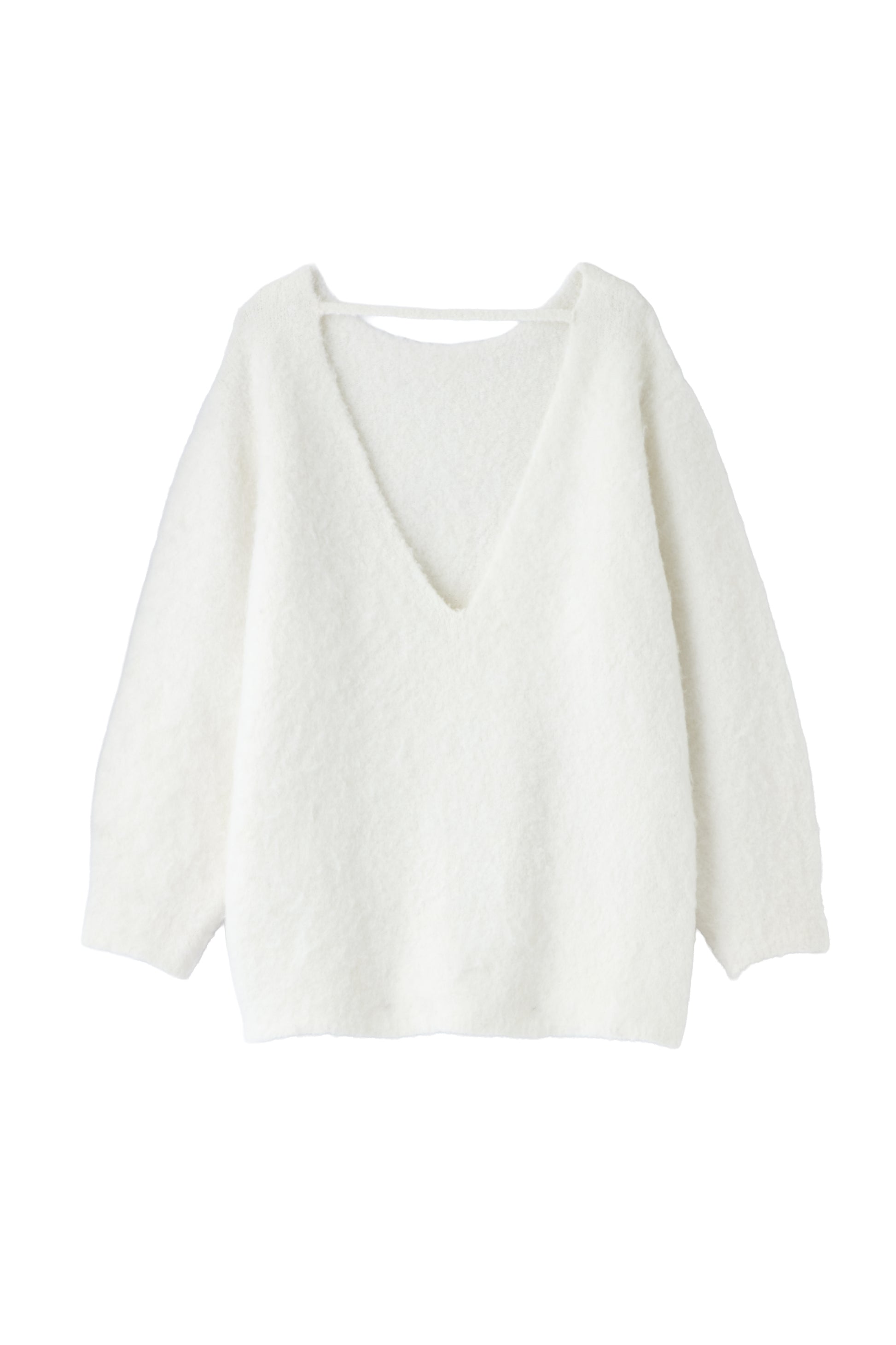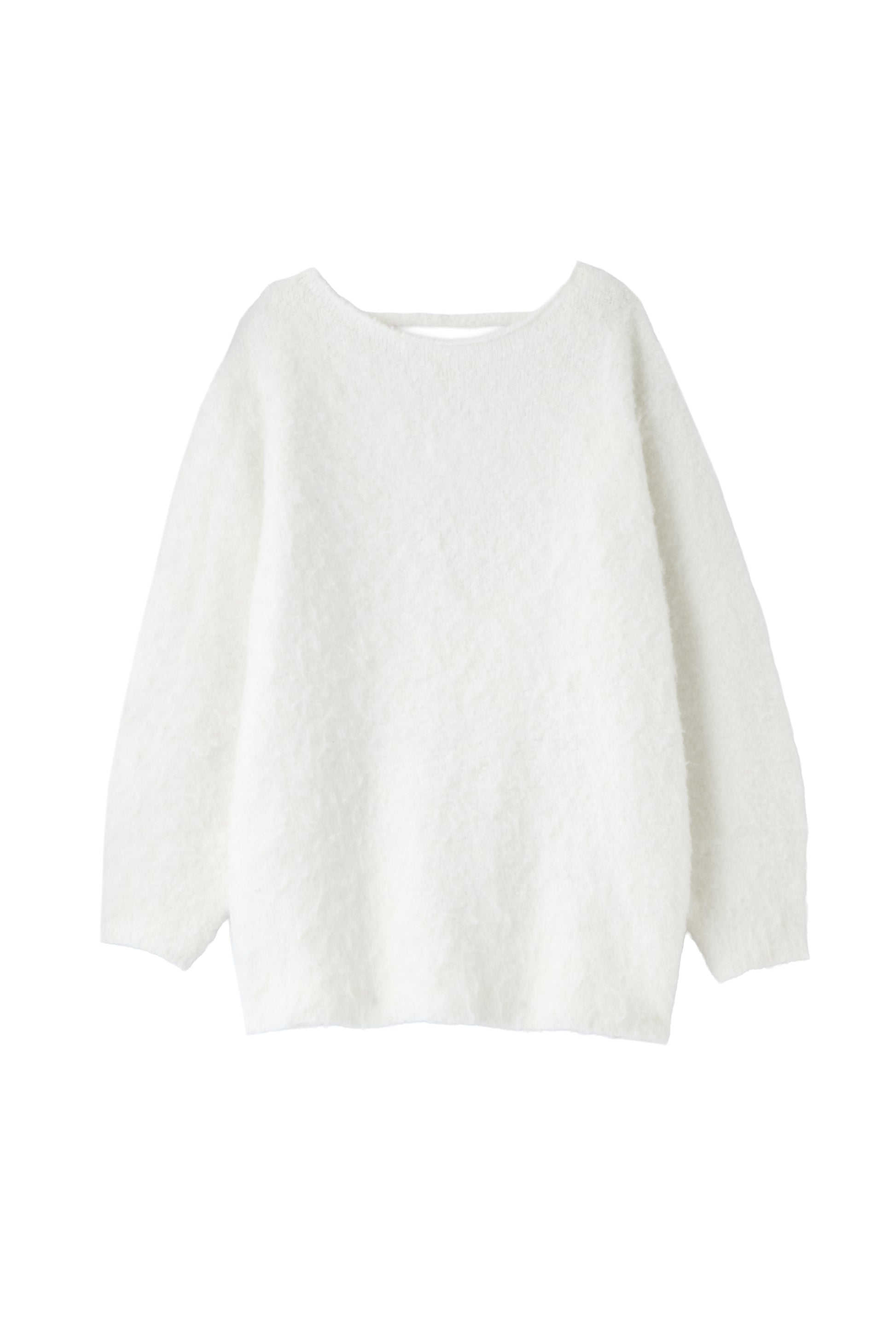 ふんわりとしたシャギー素材が魅力のバックオープンニット。