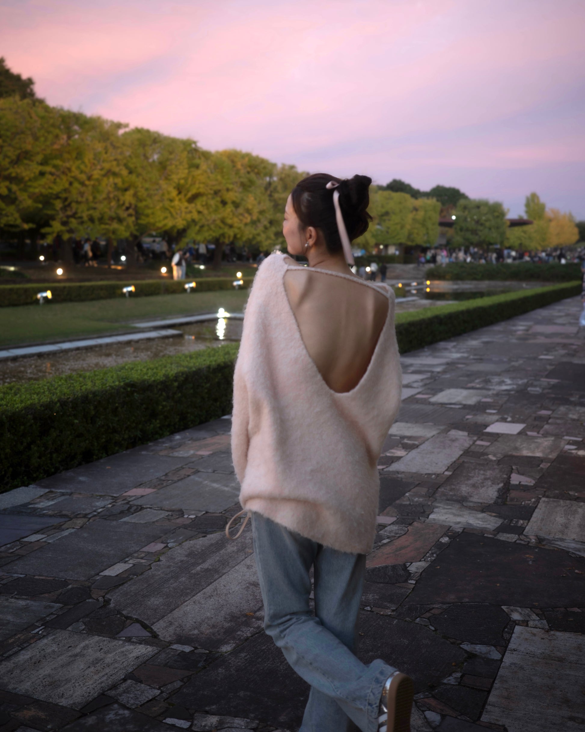・背中の逆三角カットが女性らしい抜け感を演出